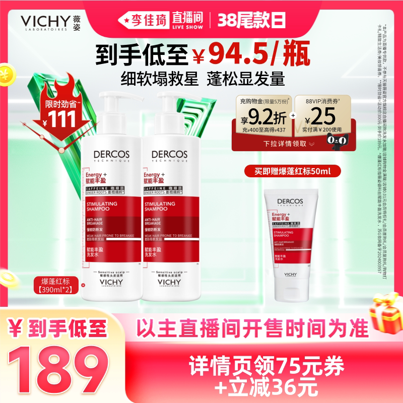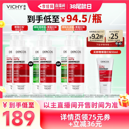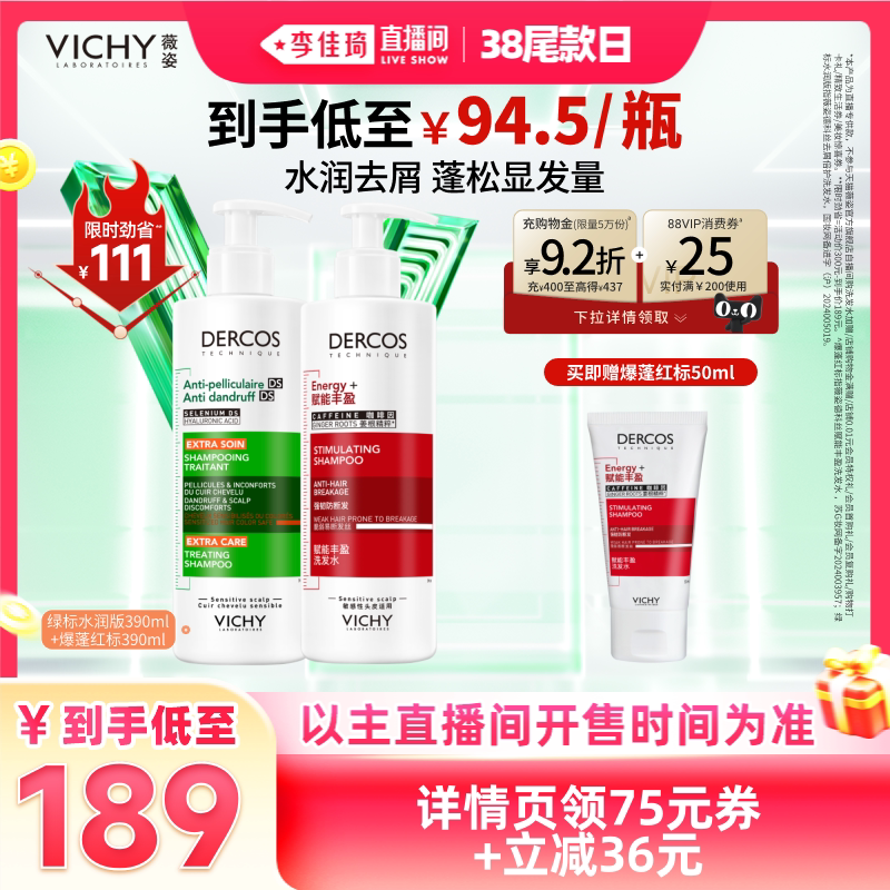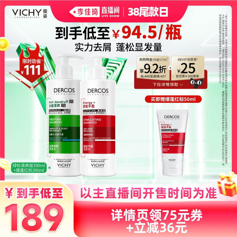 【李佳琦直播间尾款日】薇姿绿标洗发水去屑爆蓬红标蓬松*