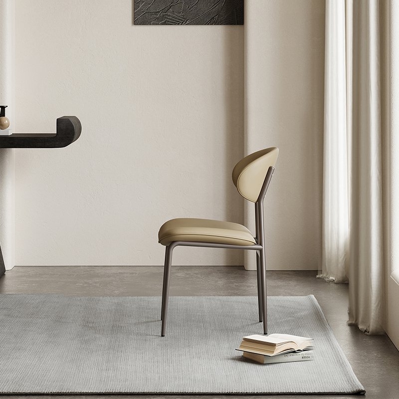 轻奢简约真皮餐椅家用意式极简奶油风餐桌椅北欧设计师软包靠背椅
