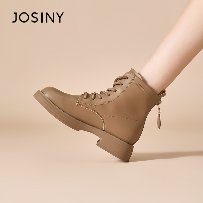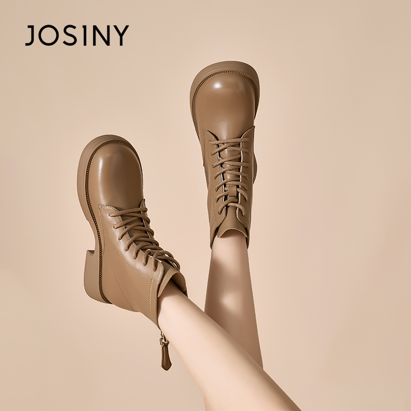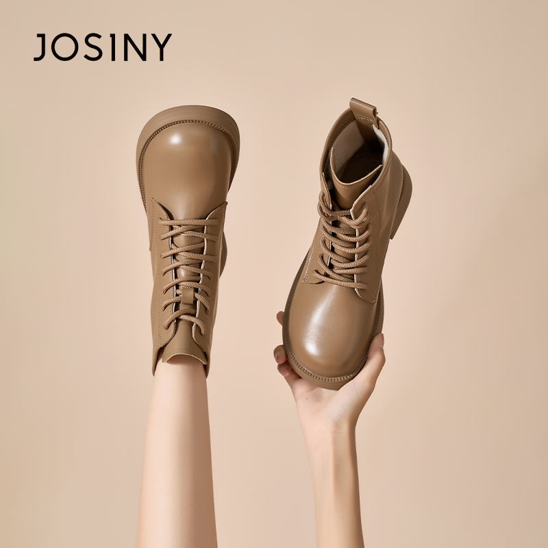 卓诗尼马丁靴女2025秋早秋新款英伦风软皮短靴粗跟时尚百搭单靴子