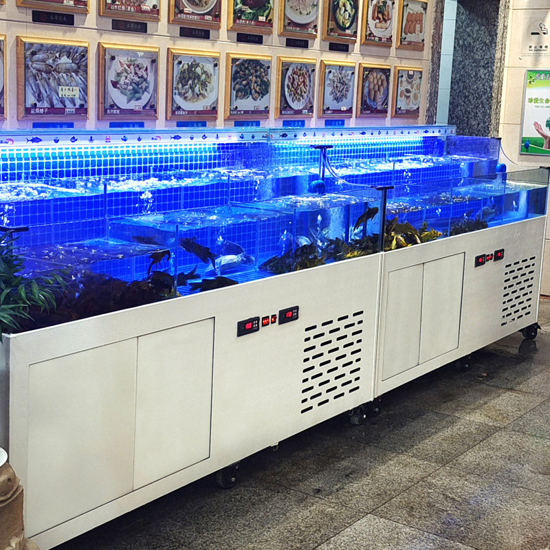 海鲜鱼缸商用贝类池超市饭店酒店水产混养M池移动贝类池一体制冷