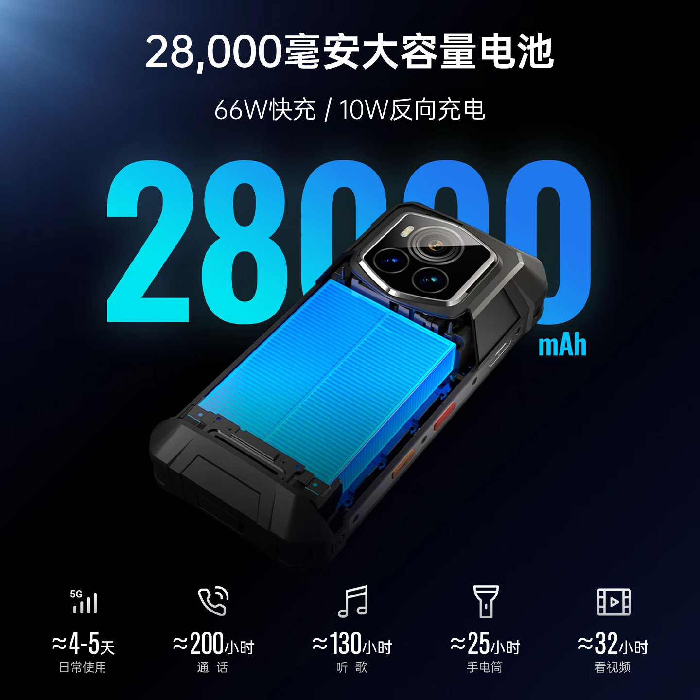 三防智能手机5G全彩夜视防摔防水28000毫安谷歌版FOSSIBOT F107