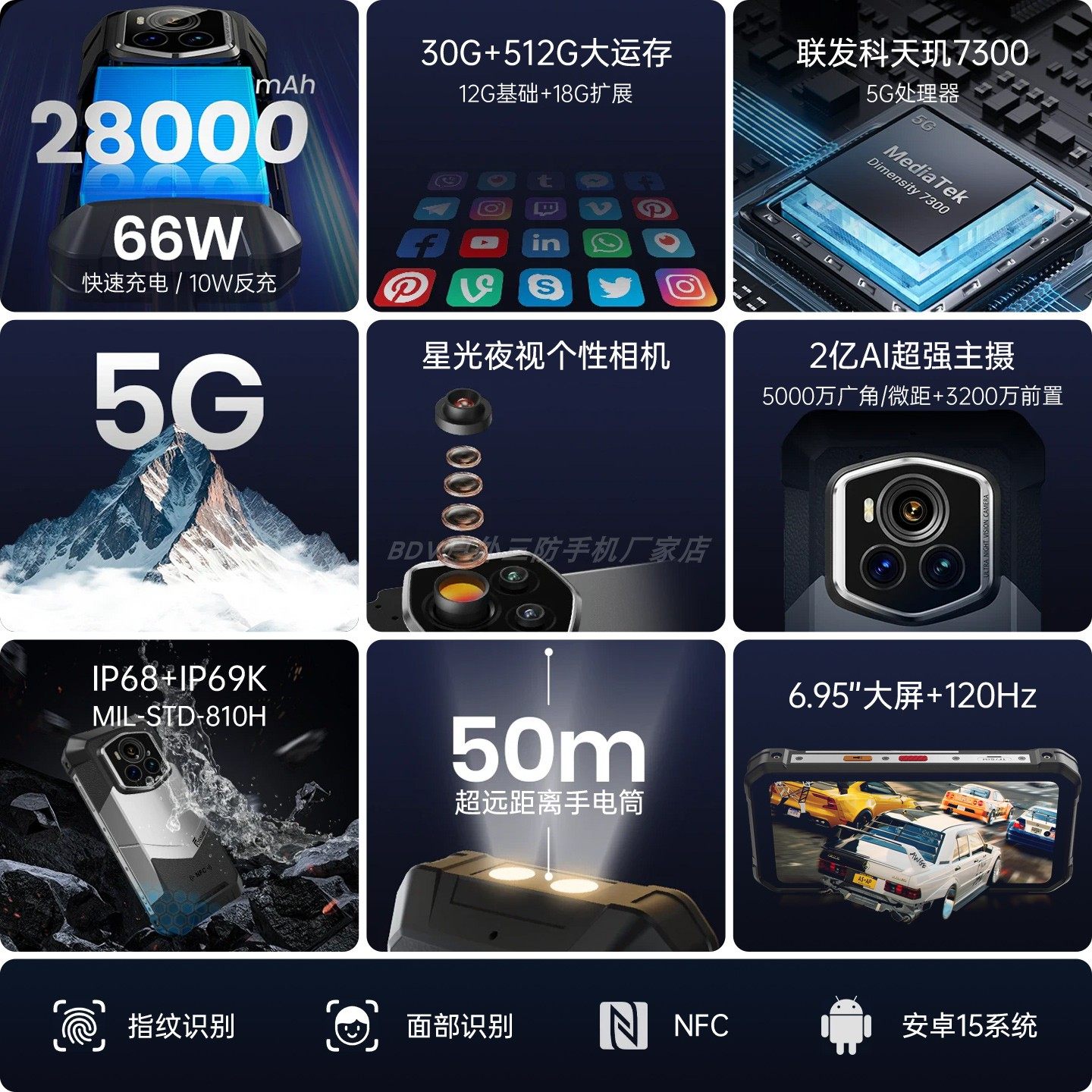 三防智能手机5G全彩夜视防摔防水