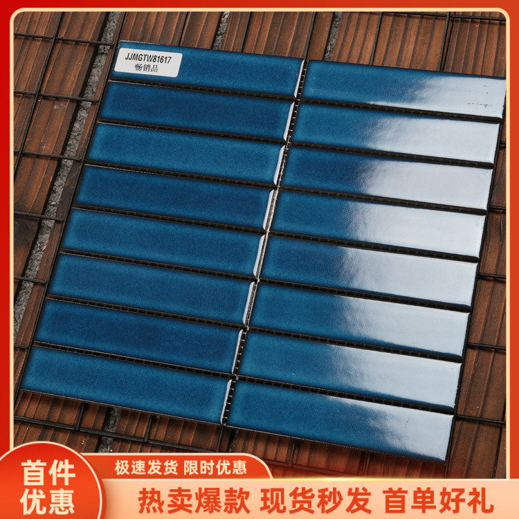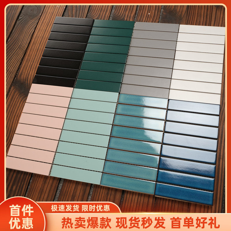 北欧浅绿纯色长条马赛克厨房阳台卫生间墙面瓷砖餐厅浴室背景墙砖