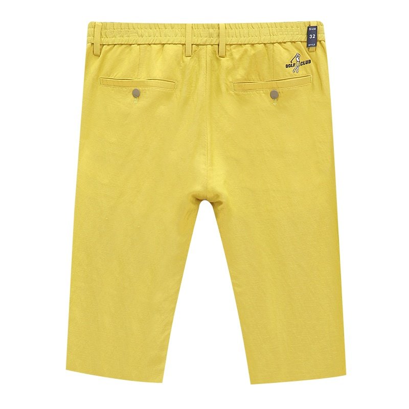 夏季男裤中裤亚麻裤五分裤松紧腰宽松高尔夫休闲沙滩短裤子夏季薄