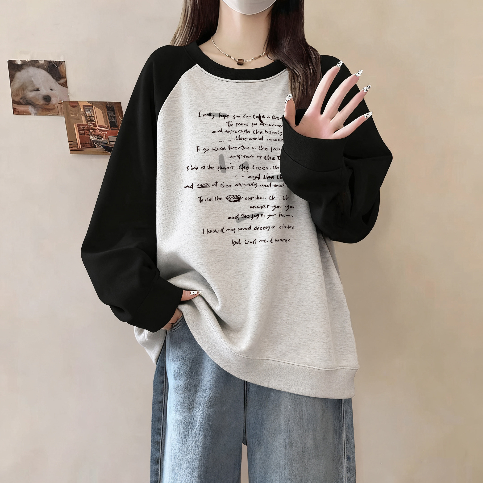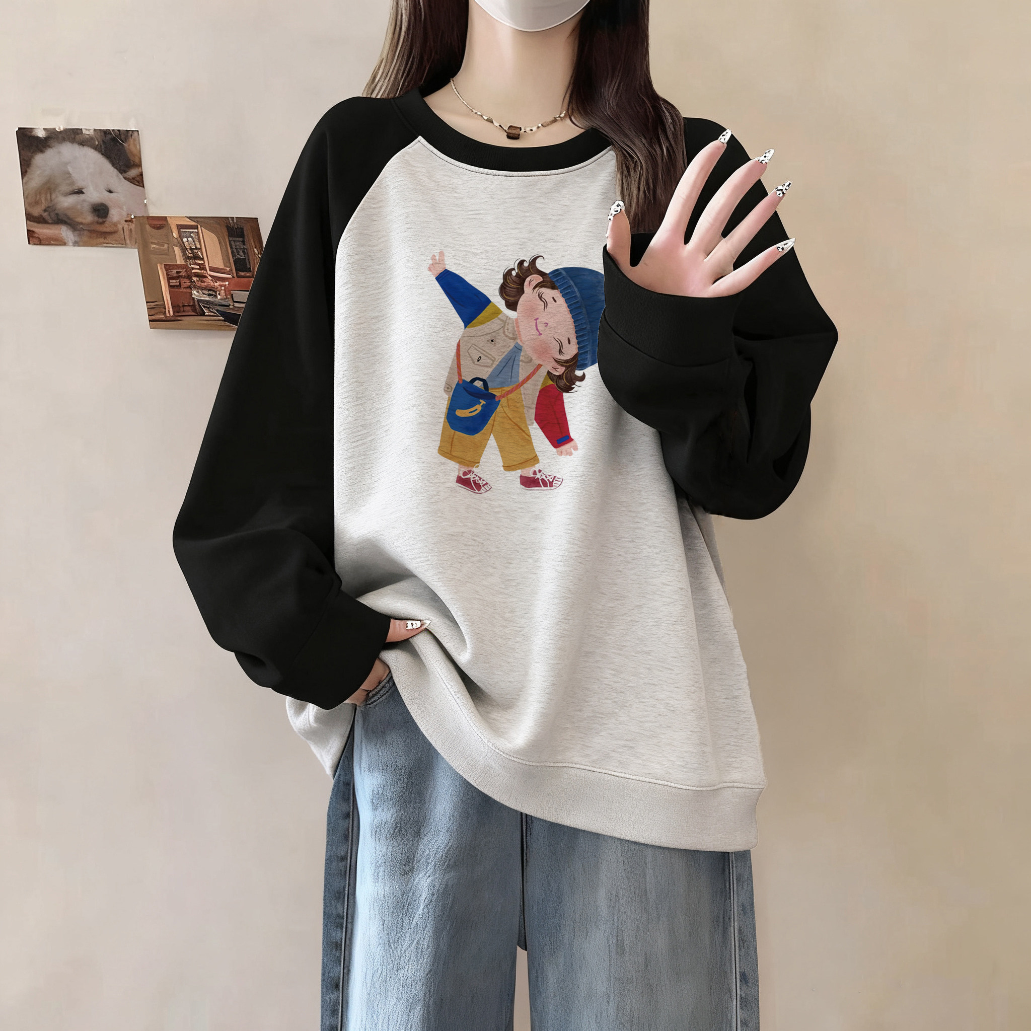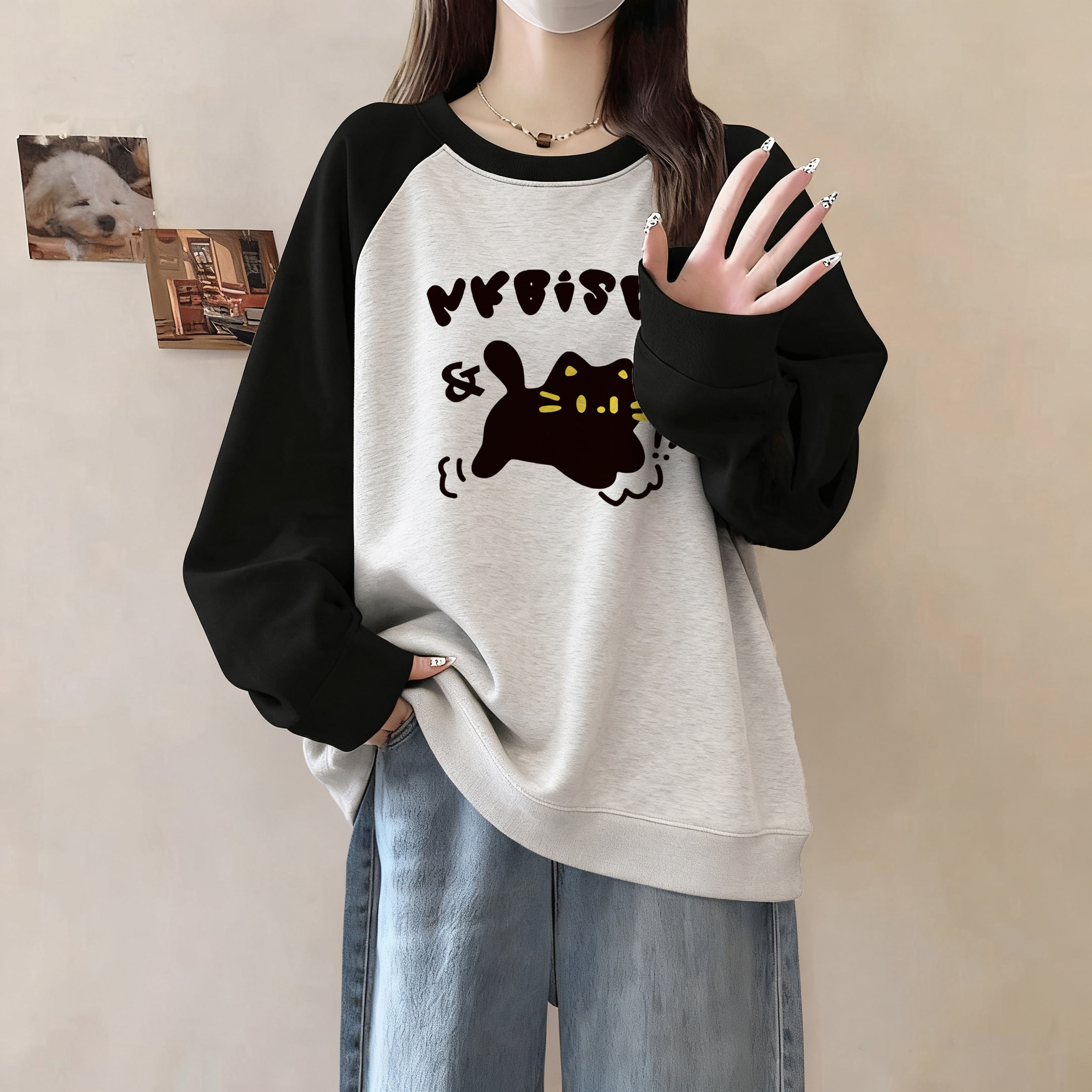 卫衣女款2025新款秋季初中生即墨宽松慵懒风加绒无帽大码胖mm显瘦