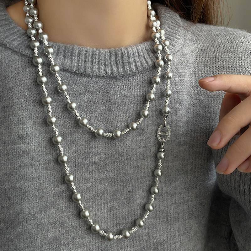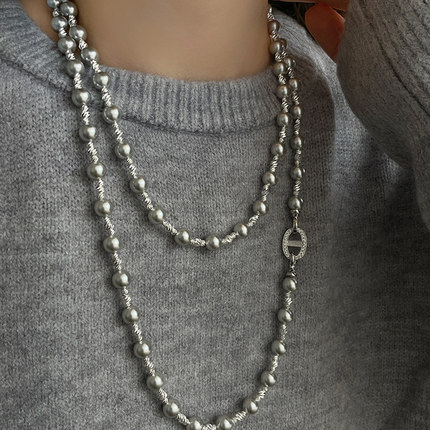 秋季双层长款珍珠毛衣链女2025年新款潮大气高档项链高级感锁骨链