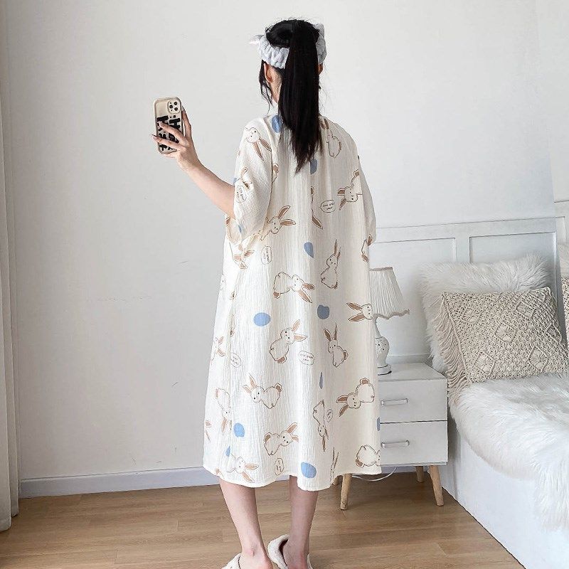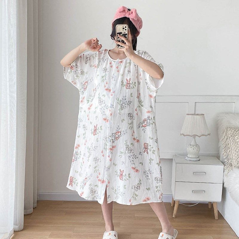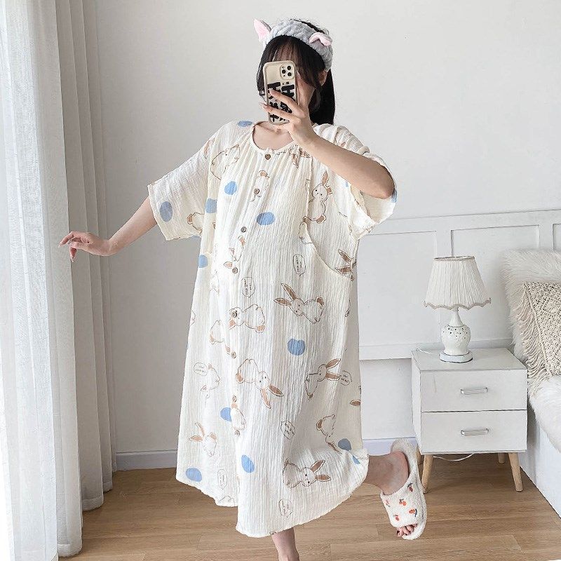 哺乳睡裙带胸垫大码孕妇纯棉喂奶睡衣裙200斤纱布家居裙女薄夏季