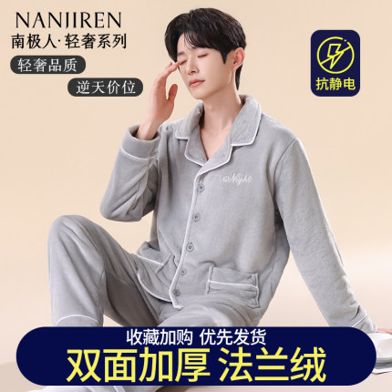 【抗静电】珊瑚绒睡衣男士加厚冬