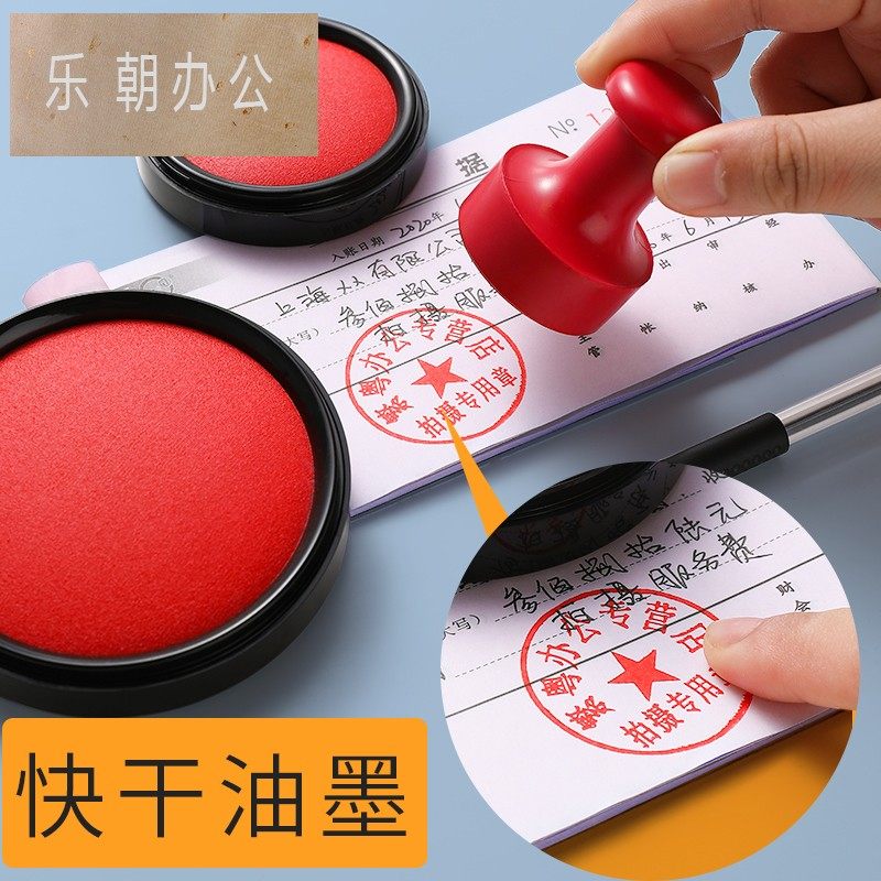 利百代MS-60快干印台60号明色朱肉印泥大号办公财务专用红色纱布70mm按手圆形印章印台红色银行财务快干印泥
