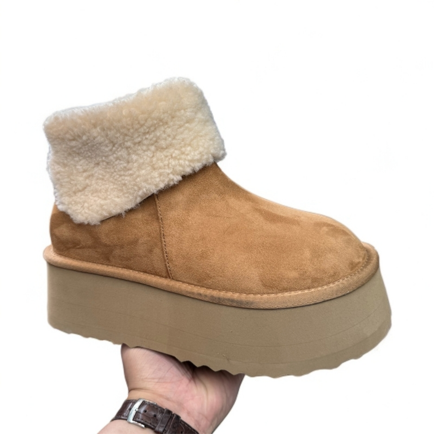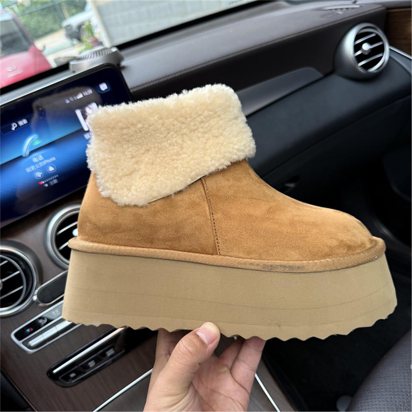 2025新款羊毛口麂皮绒短筒雪地靴女厚底翻羊毛加绒保暖鞋防滑短靴