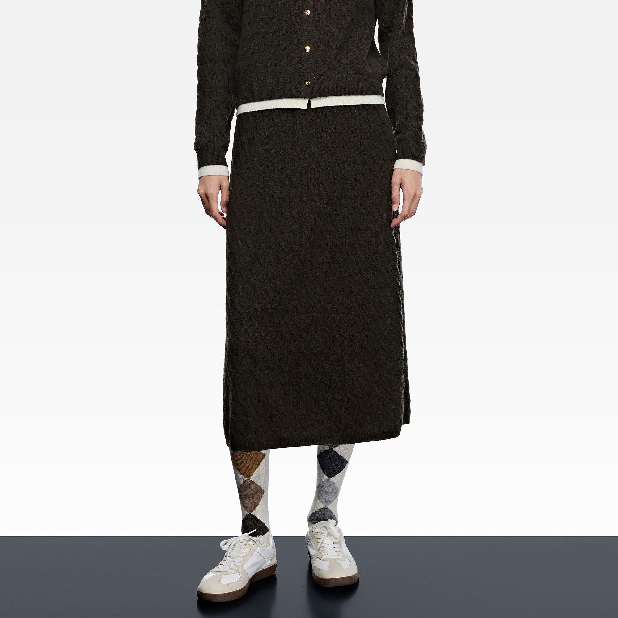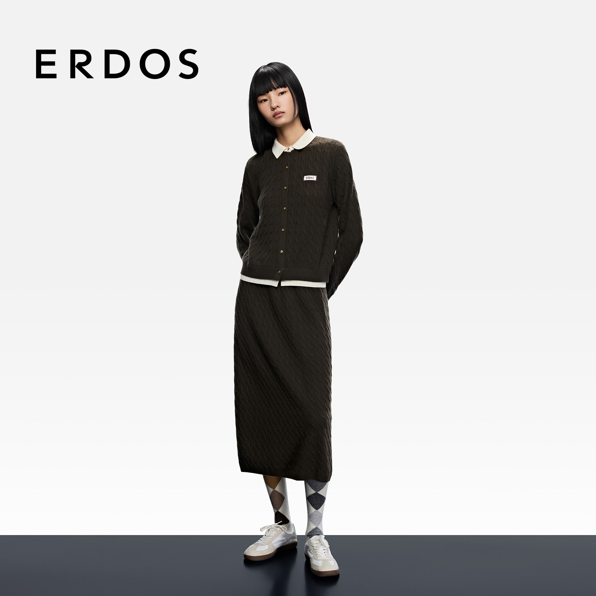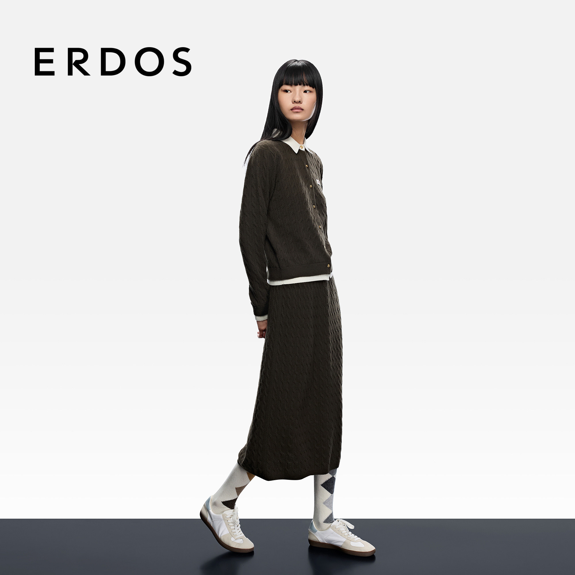 ERDOS 山羊绒绞花女士半裙25年秋冬新品学院风小A字半身裙子裙装