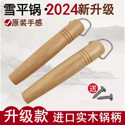 进口实木榉木雪平锅木柄把手 通用替换手柄 吉川日式奶锅单柄配件