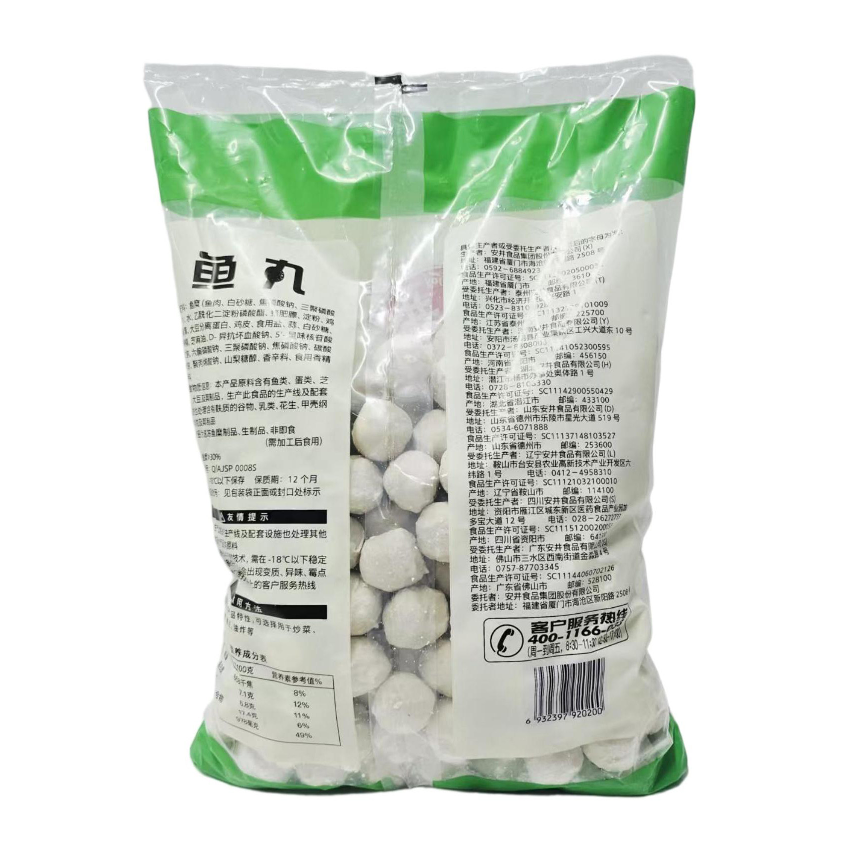 安井鱼丸2.5kg/袋实心鱼丸麻辣烫冒菜食材串串香火锅丸子食材商用