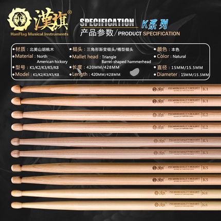 漢旗架子鼓鼓棒胡桃木鼓槌K系列K1/K2/K3/K5/K8