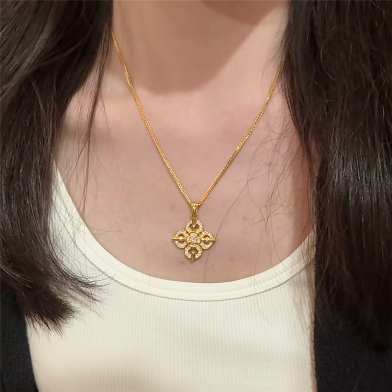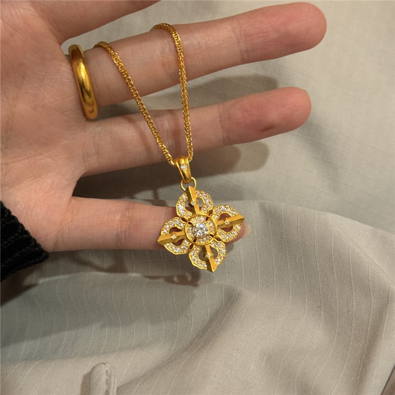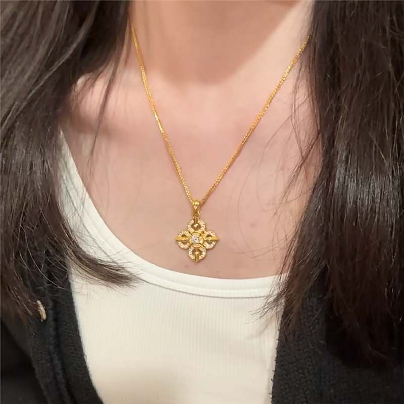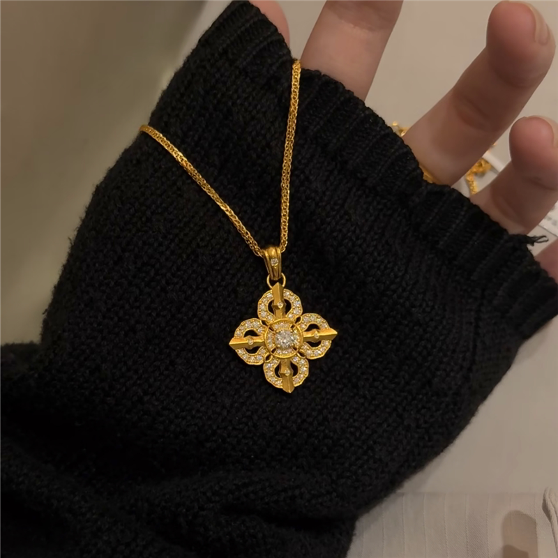 古法沙金镶嵌钻饰十字金刚杵吊坠项链女仿黄金色国潮降魔杵锁骨链