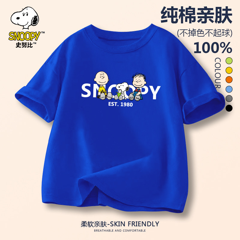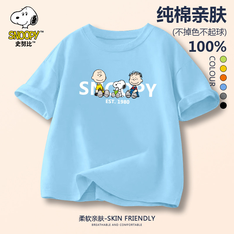 史努比男童短袖T恤纯棉儿童夏季2025新款男孩洋气上衣中大童半袖