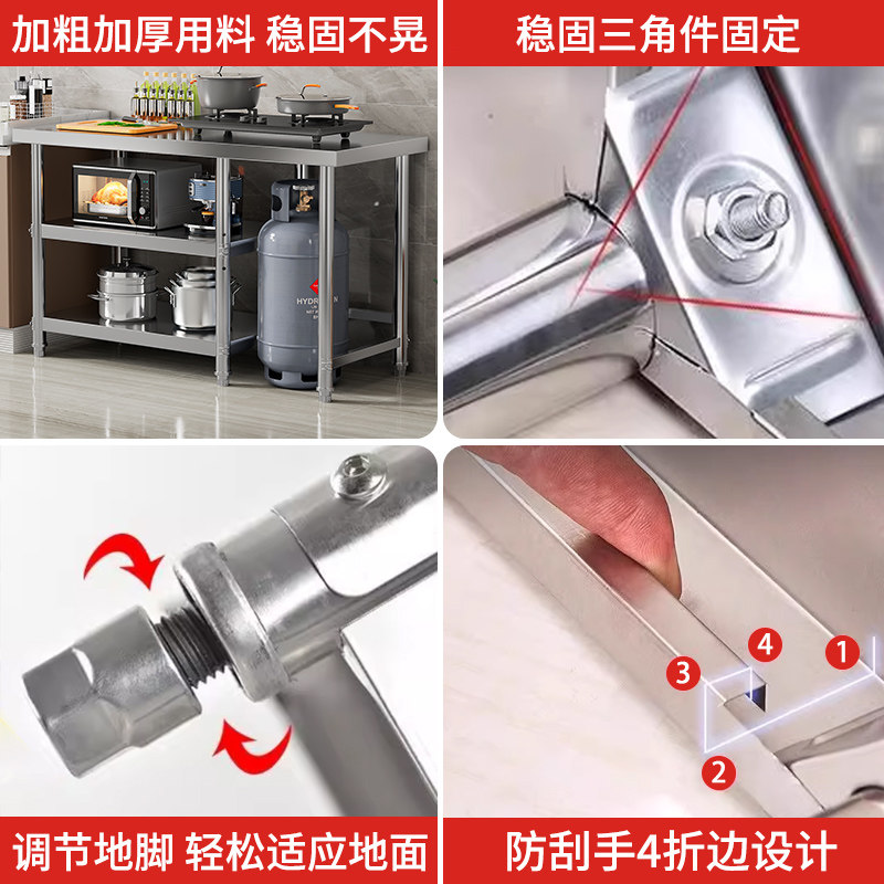 可定制不锈钢加厚工作台煤气罐灶台架子家商用饭店切菜案板操作台