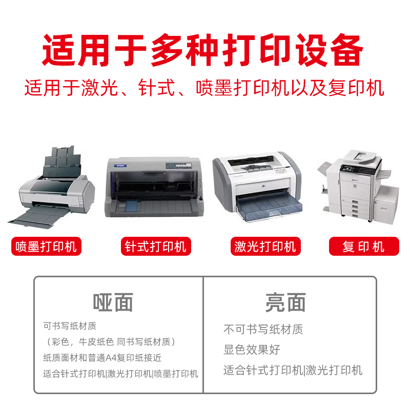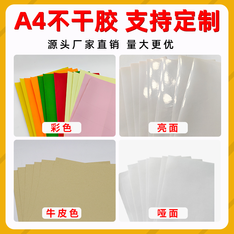 A4彩色不干胶打印纸标签切割喷墨激光条码纸混色红色橙色黄色绿色紫色蓝色粉色书写广告贴纸背胶空白办公室a4