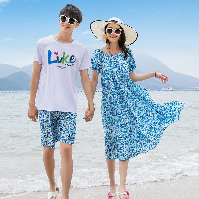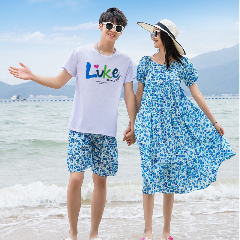 情侣装沙滩女夏2025新款男套装海边旅游渡假民族风显瘦连衣裙子仙