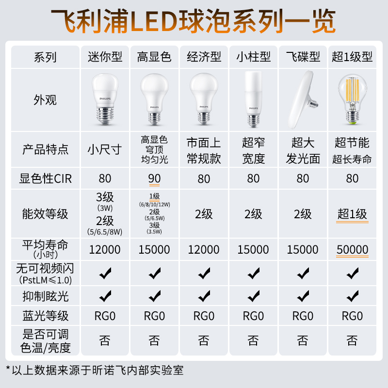 飞利浦led灯泡e14e27超亮照明大小螺口光源暖白节能灯泡家用球泡