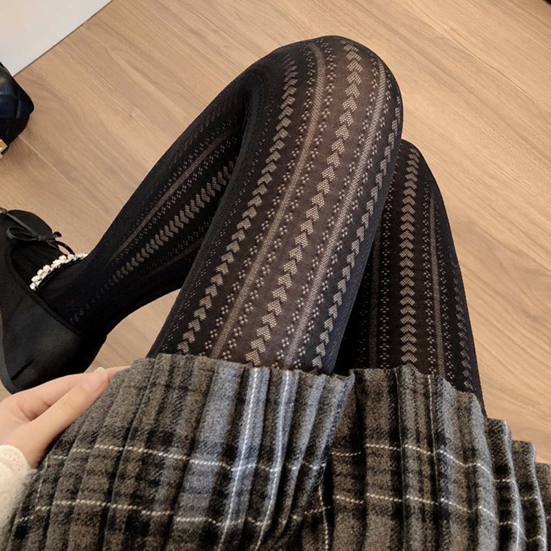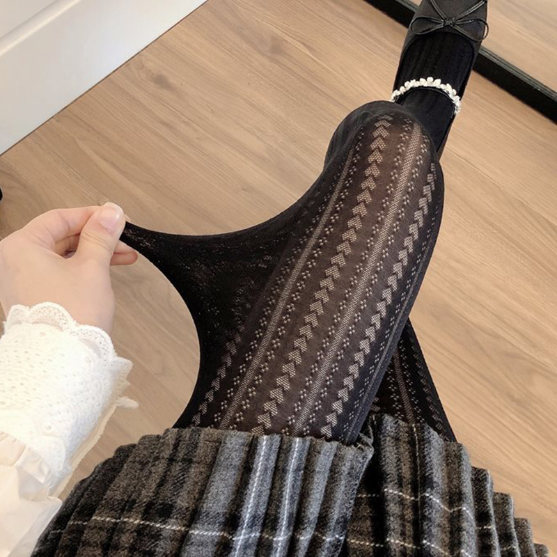春秋季烟灰色连裤袜女防勾丝提花甜美爱心白色打底袜日系JK白丝袜