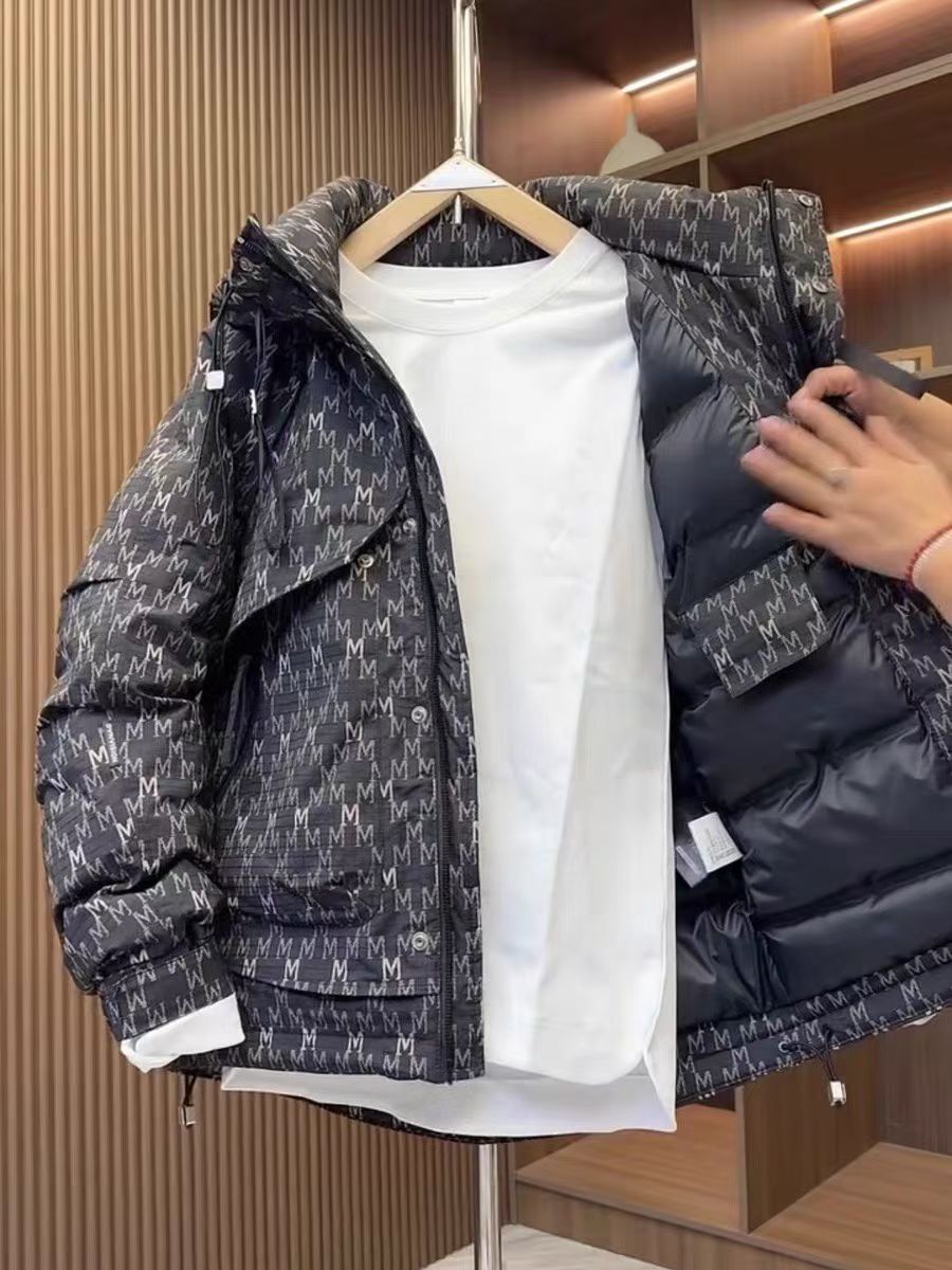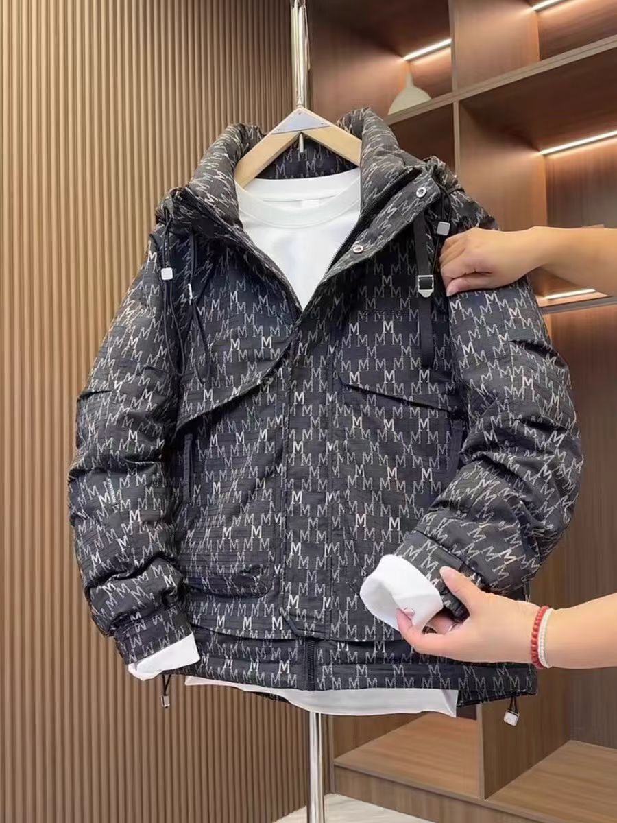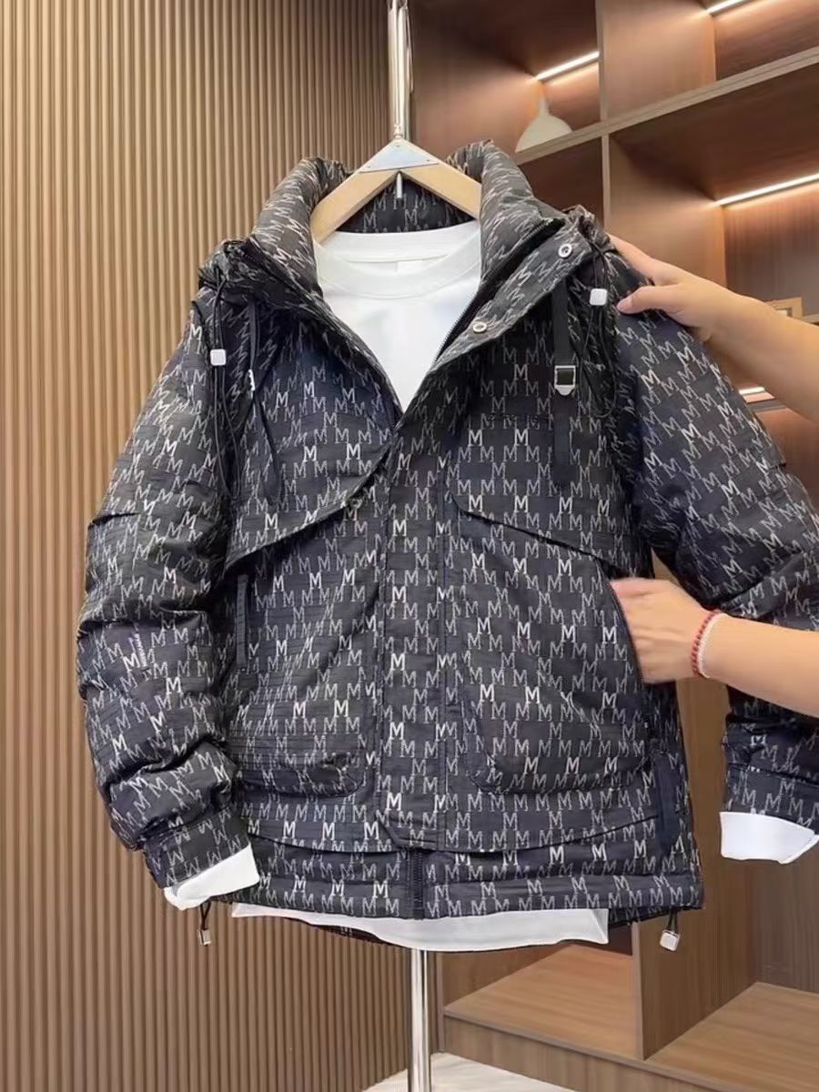 冬季新款工装连帽羽绒服男潮牌时尚多口发袋满花白鸭绒外套冲锋衣