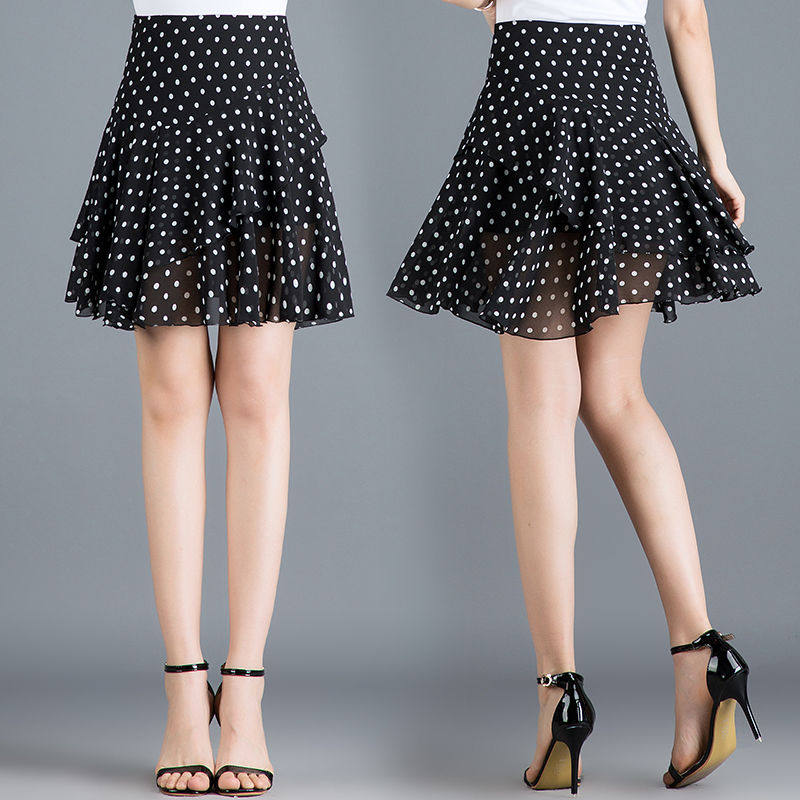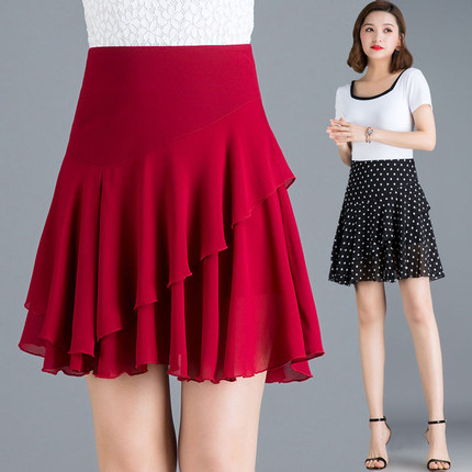 雪纺半身裙女2021夏季新款韩版荷叶边高腰大码跳舞裙女a字百褶裙