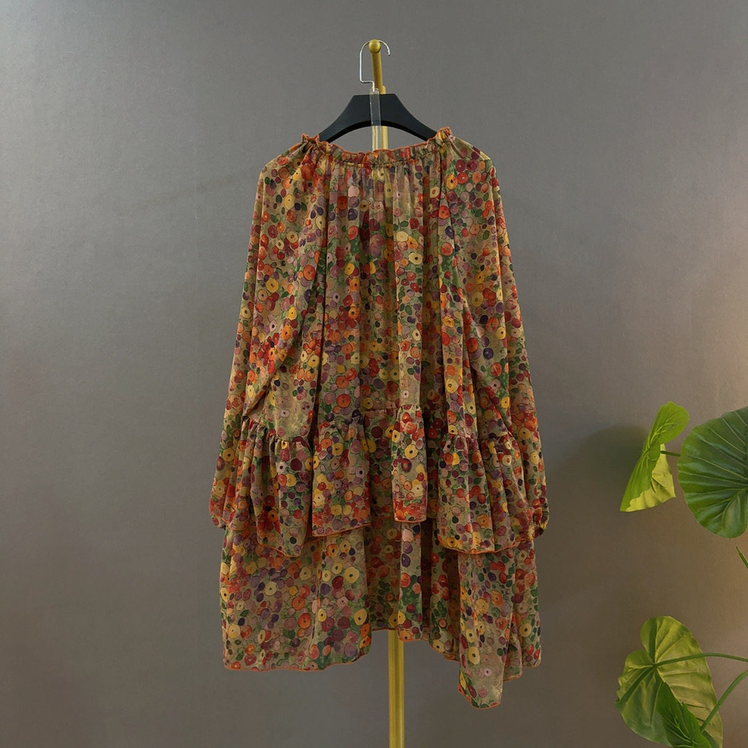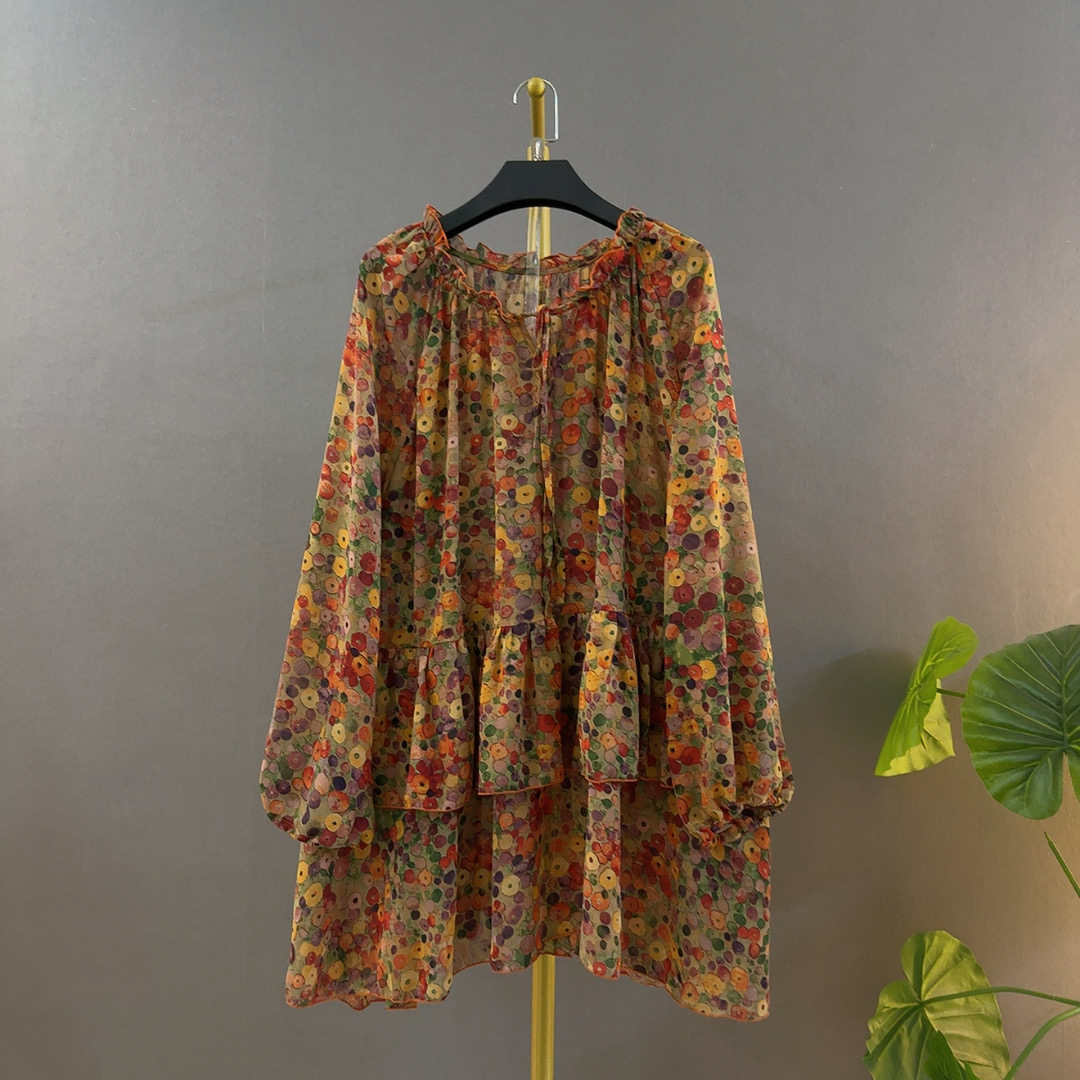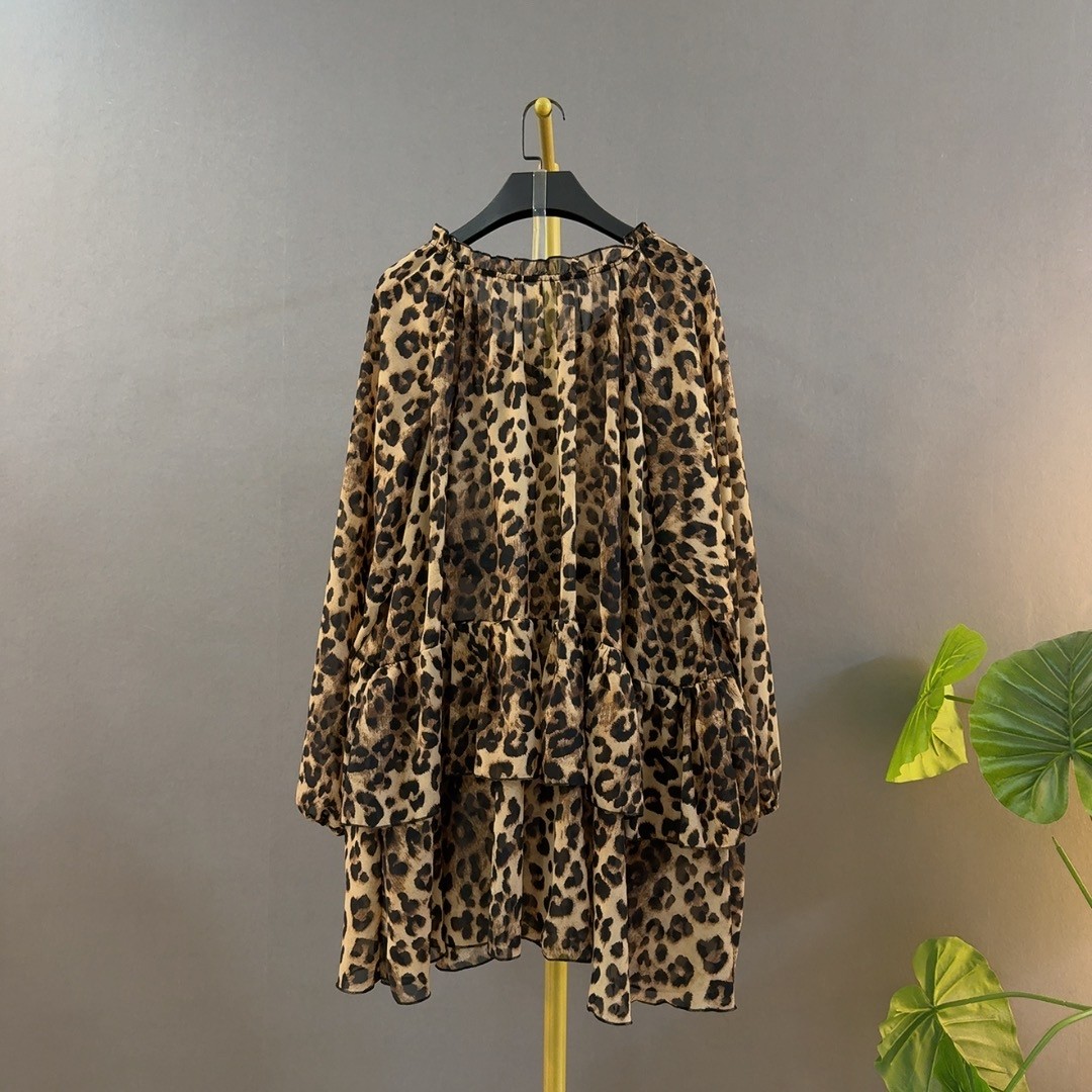 欧洲站大码女装中长款宽松遮肉豹纹休闲遮屁股长袖圆领雪纺打底衫