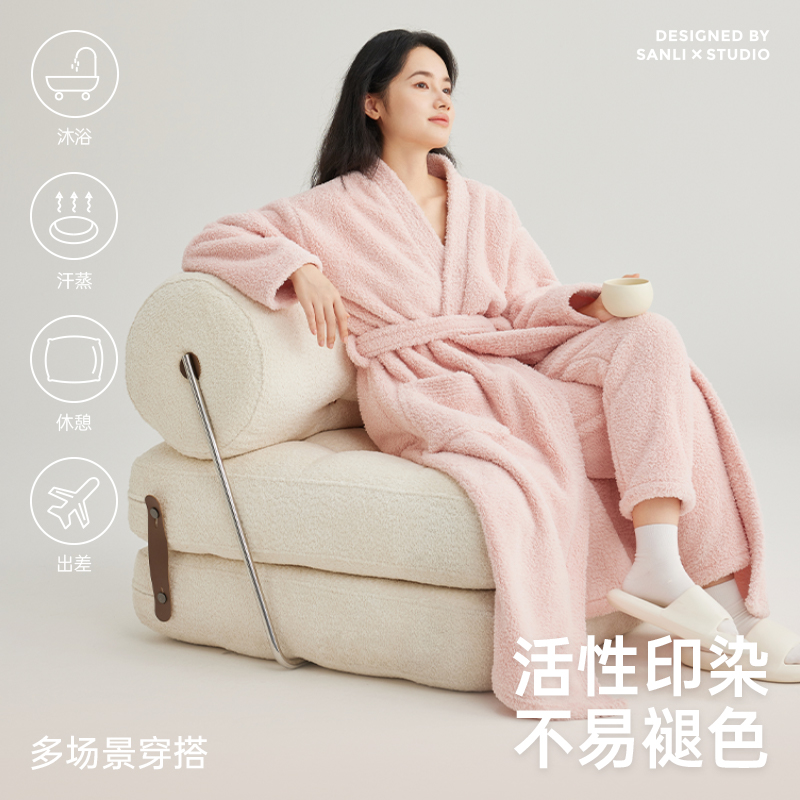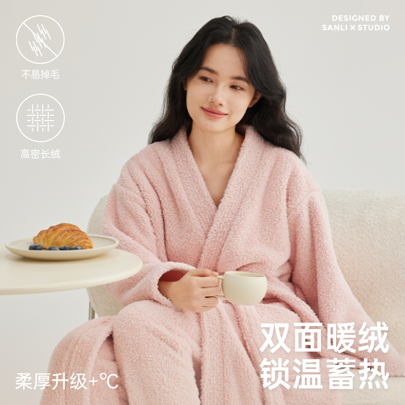 三利浴袍女加厚保暖家居服秋冬情侣睡袍成人可穿式浴巾2025新款男