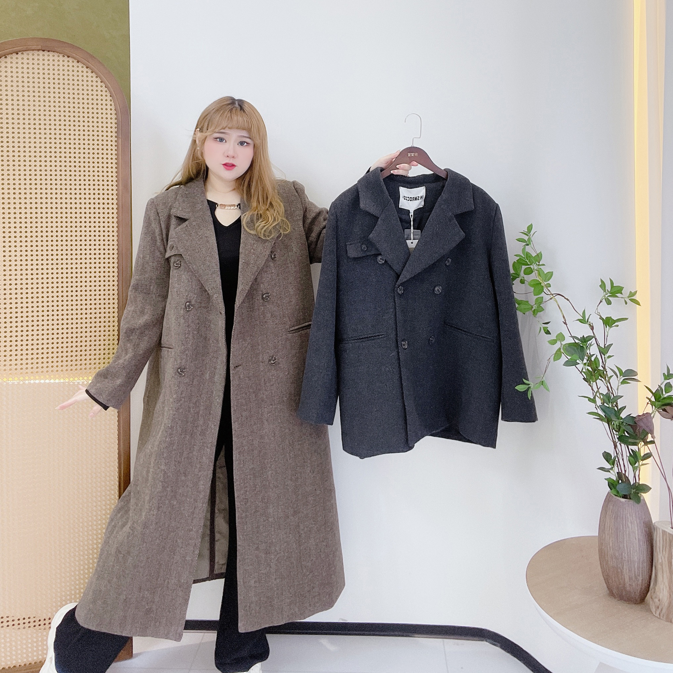 胖莹莹大码女装加厚呢子小个子韩系英伦风雅丹风秋冬毛呢大衣外套