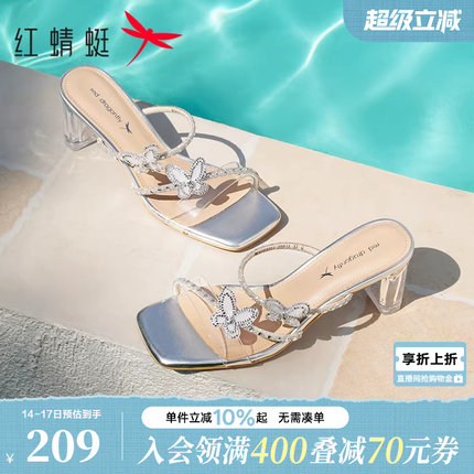 红蜻蜓水钻高跟凉拖女夏季新款女鞋仙女风气质粗跟鞋子外穿凉拖鞋