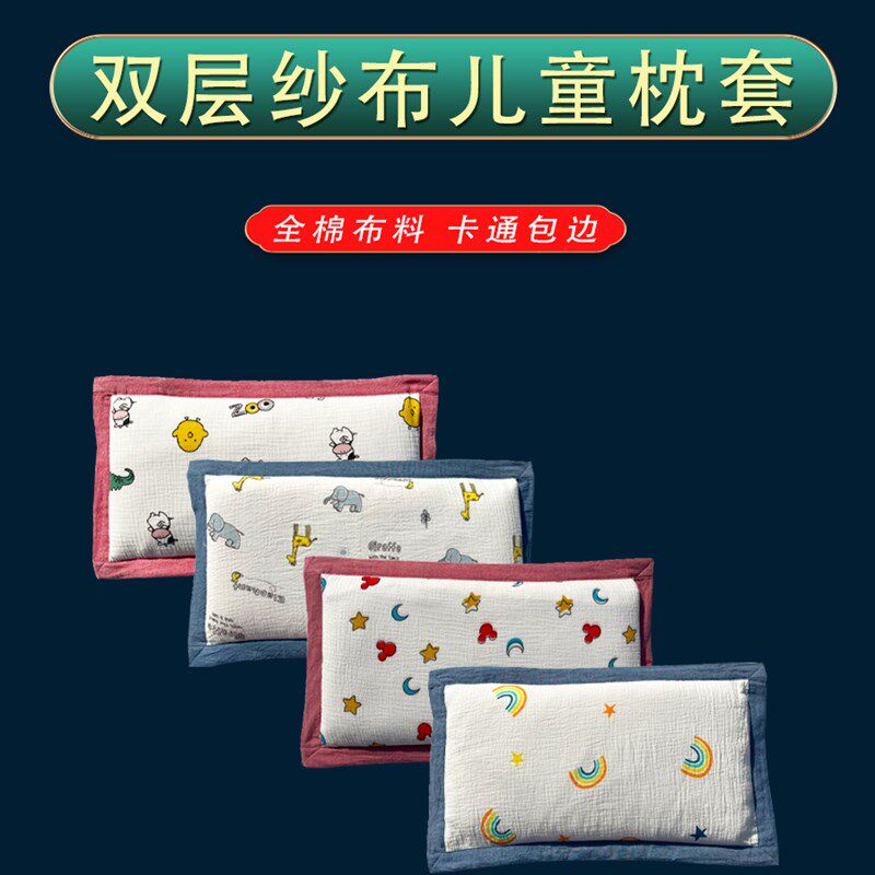 (枕套)双层纱布儿童 全棉卡通枕头 学生幼儿园宿舍枕头套30*50cm