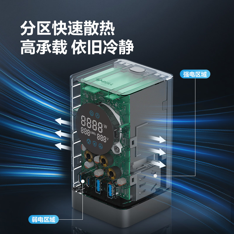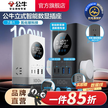 公牛小电舱100w快充数显插座USB多功能快充桌面办公接线板排插