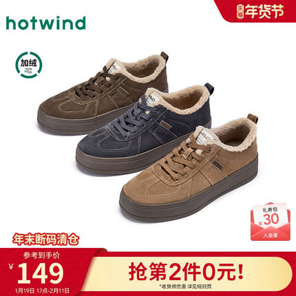 热风男鞋2025年冬季新款加绒复古板鞋百搭增高休闲鞋棕色德训鞋子