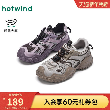 热风运动休闲鞋女2025年冬季新款户外登山鞋子百搭溯溪女鞋老爹鞋