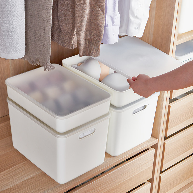 日式塑料收纳盒衣服衣柜收纳箱厨房带盖防尘PP储物盒化妆品整理箱