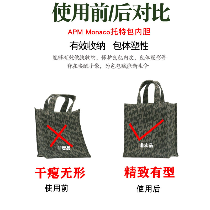 适用APM Monaco托特包内胆包内衬 涂鸦印花帆布包中包撑收纳整理