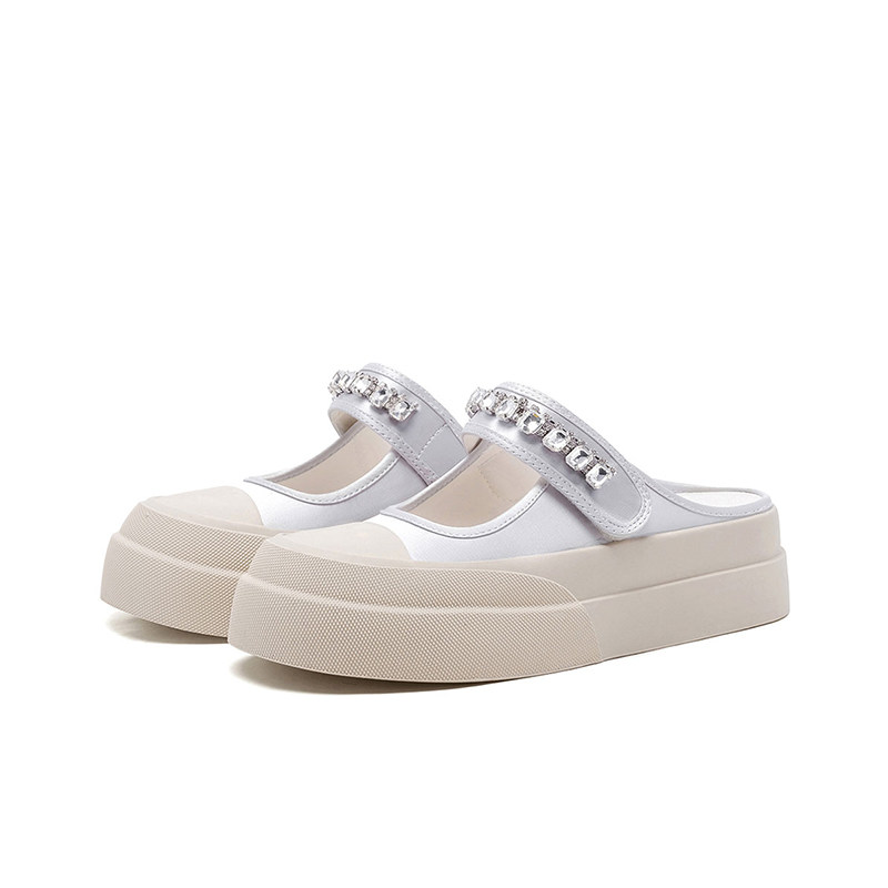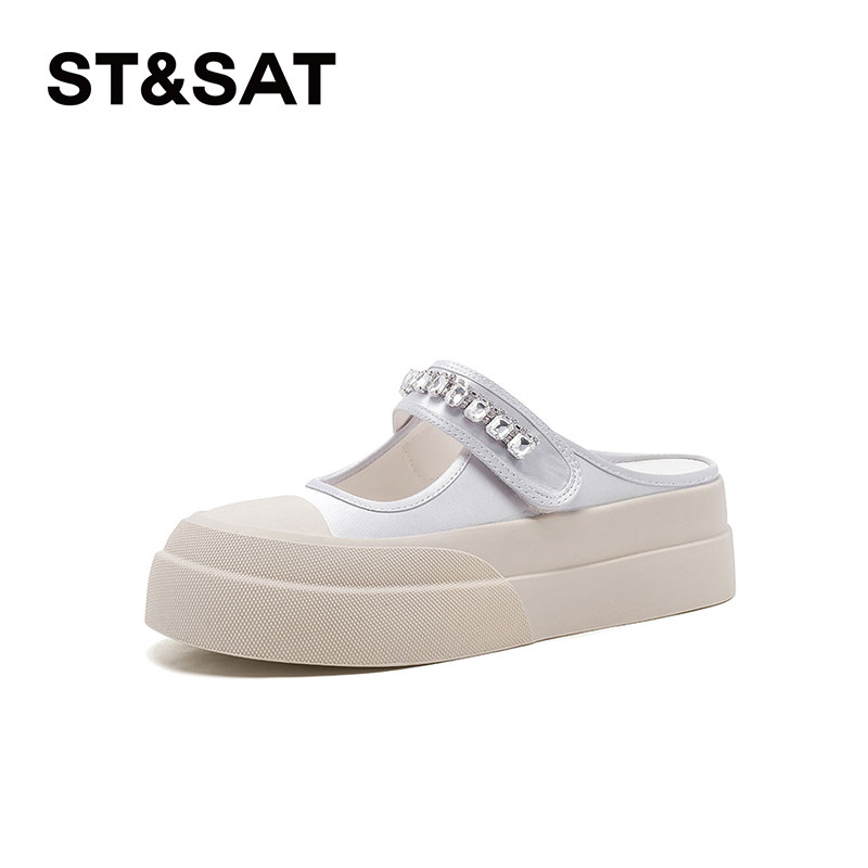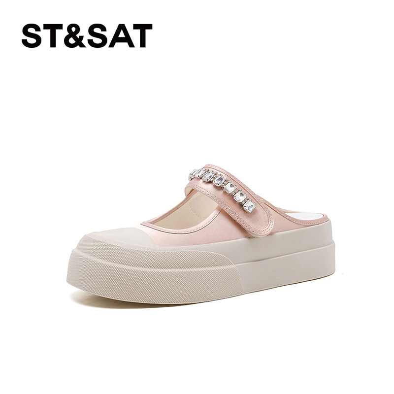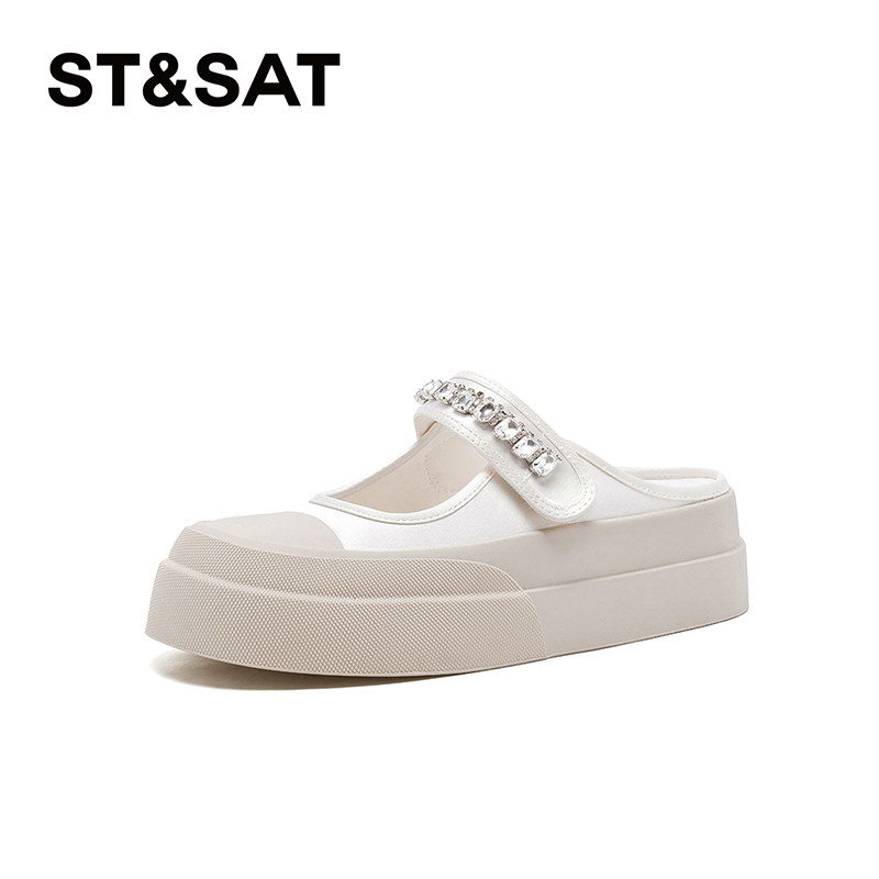 St&Sat/星期六夏季水钻魔术贴一脚蹬平底包头拖鞋女SSC2114C4U