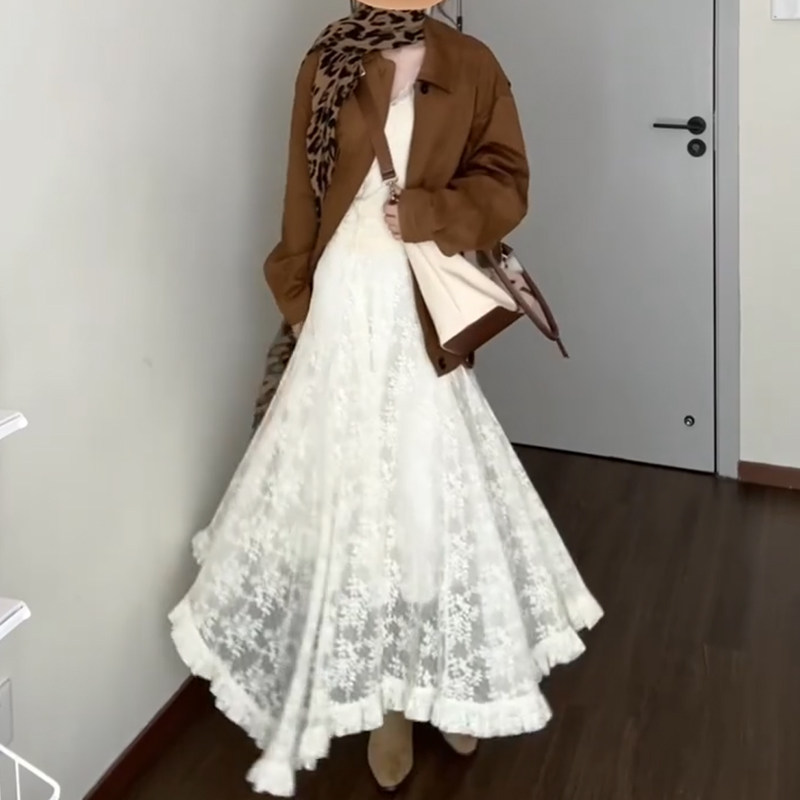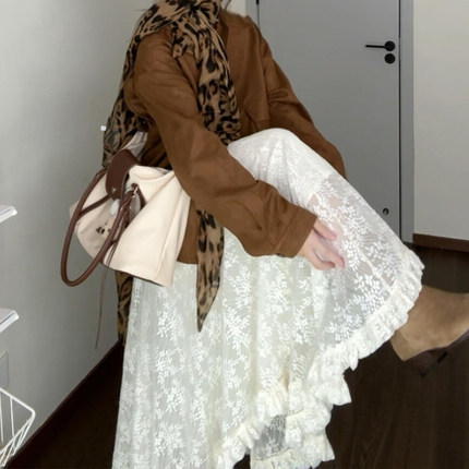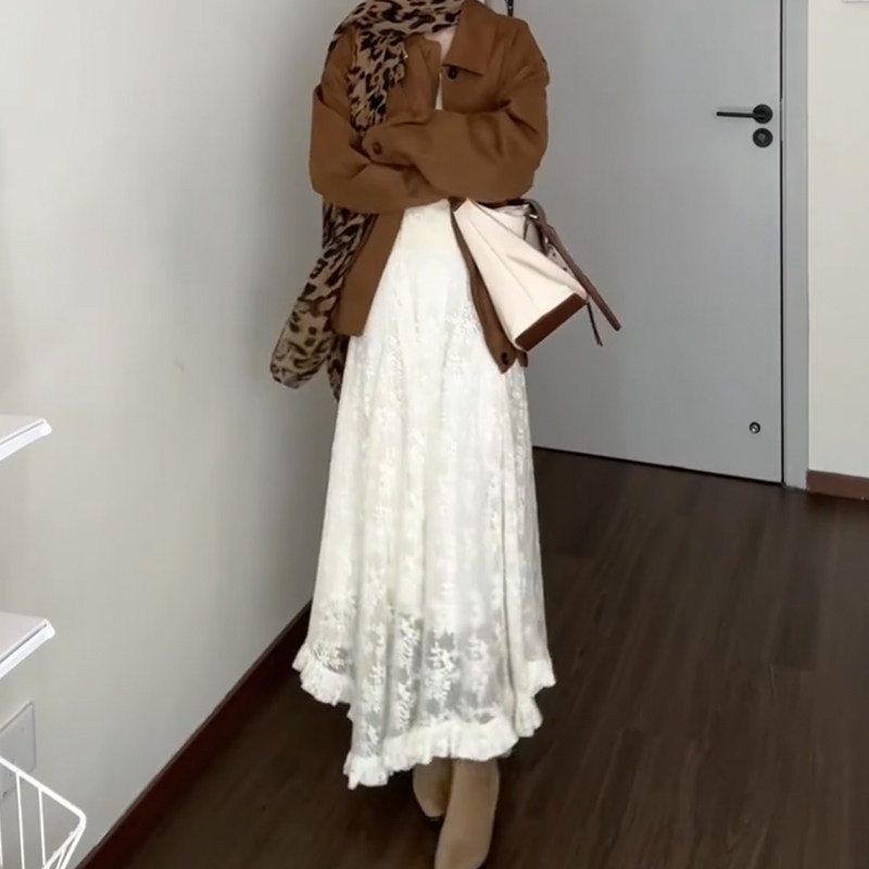 白色不规则蕾丝拼接半身长裙大码女装春季流行风格梨形伯克利裙子