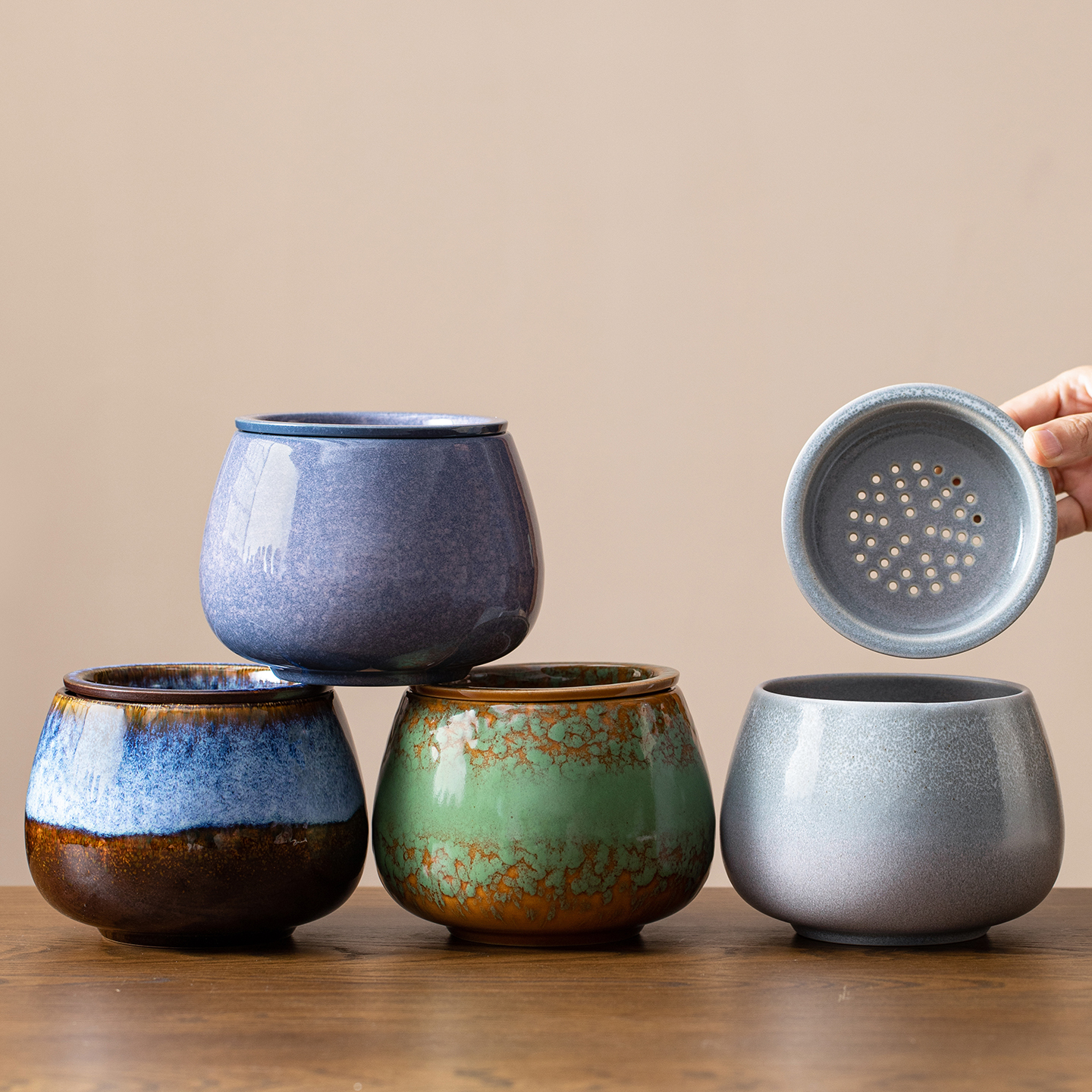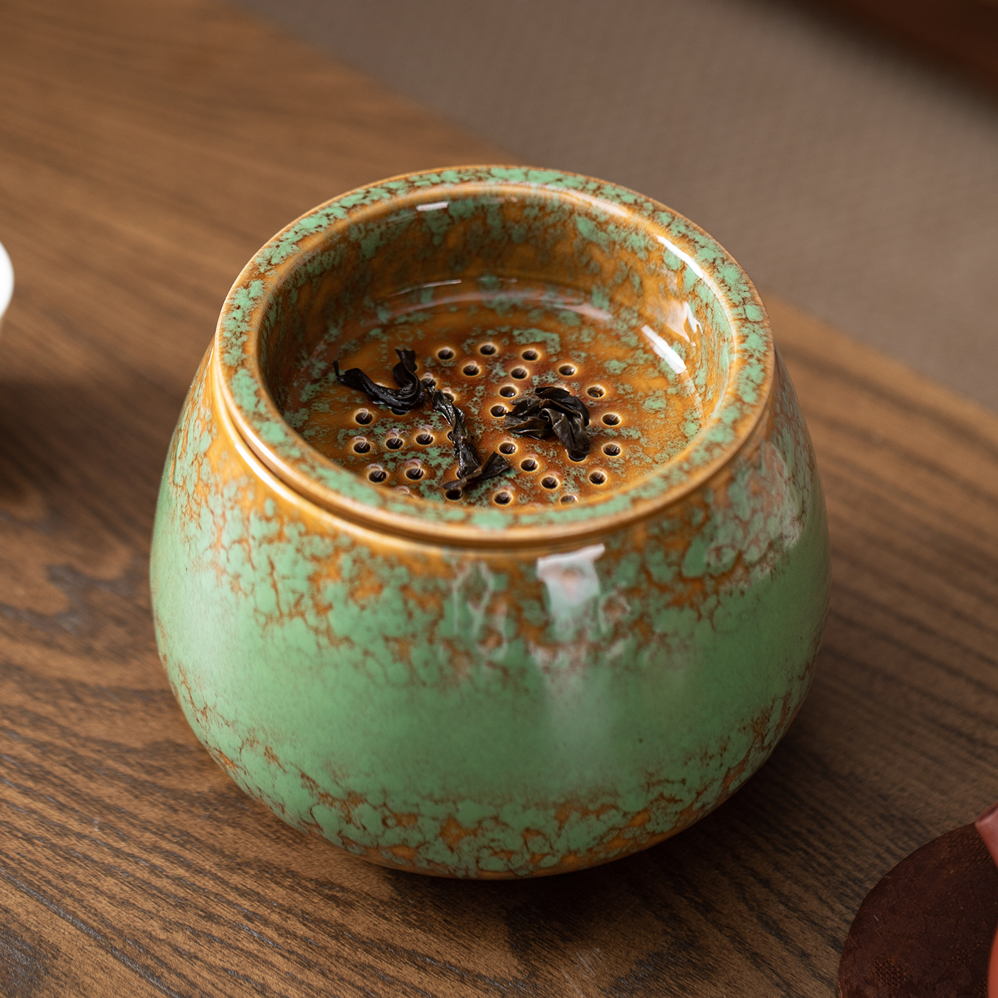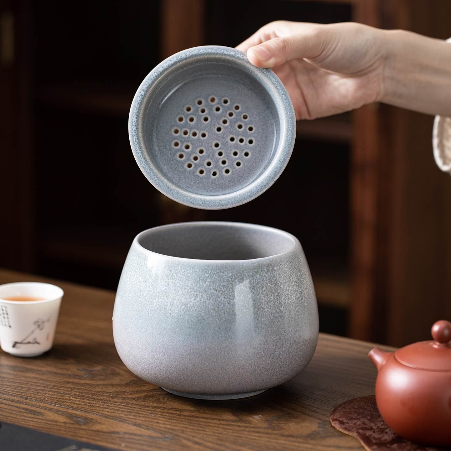 窑变茶渣缸陶瓷茶洗建水过滤带盖废水缸孟大号桌面垃圾桶茶水分离