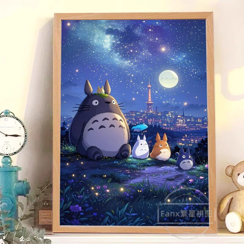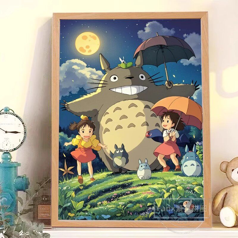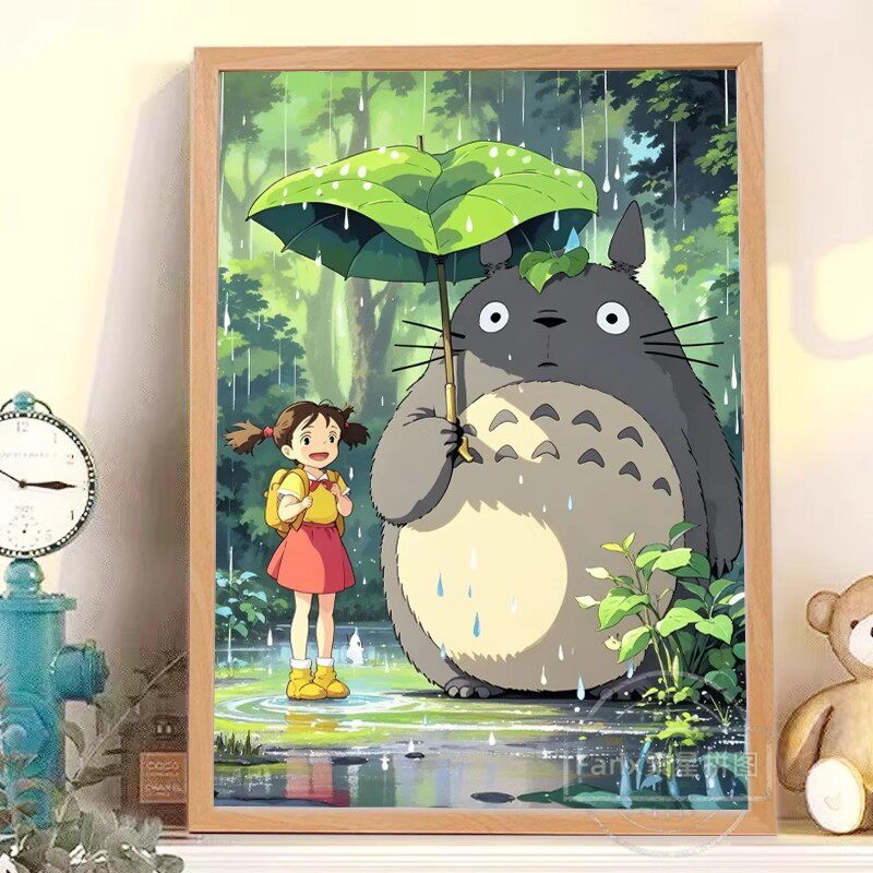 宫崎骏龙猫装饰画成品仿油画卡通可爱动漫人物儿童卧室客厅摆挂画