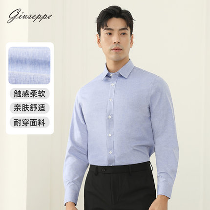 乔治白2025秋冬季衬衫男款长袖商务正装纯色通勤百搭尖领休闲透气