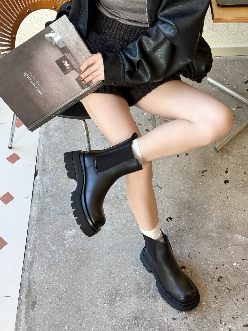 米新款2025秋真皮厚底烟管靴短靴切尔西靴英伦风舒适烟筒马丁靴女