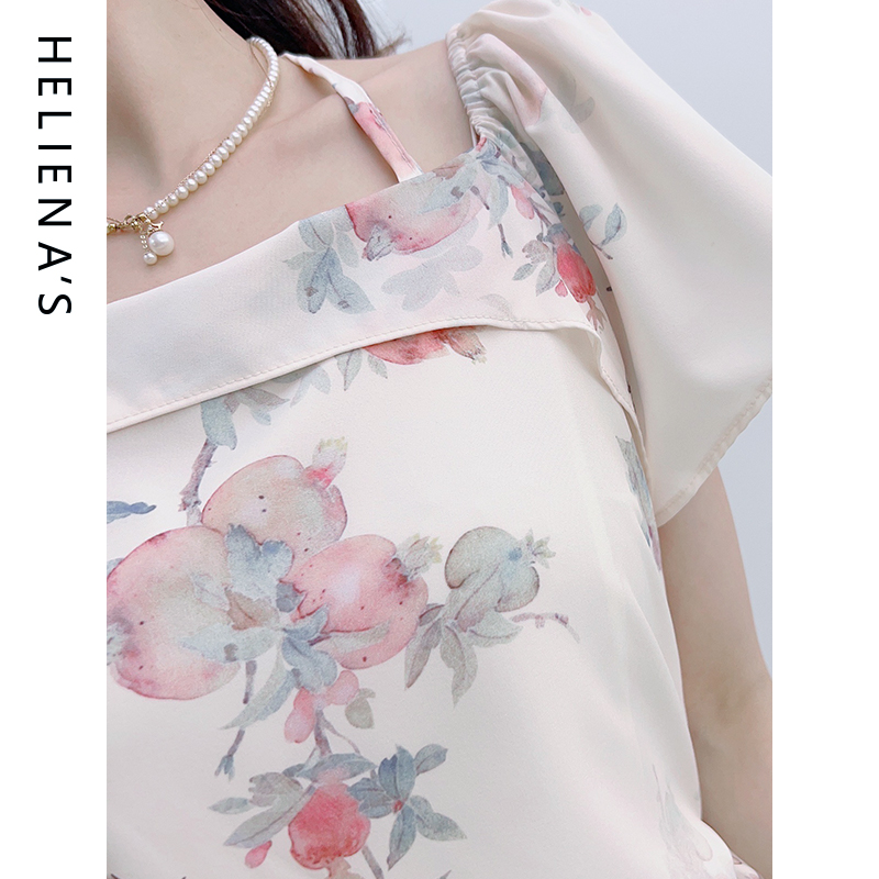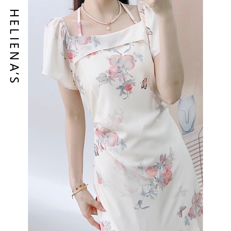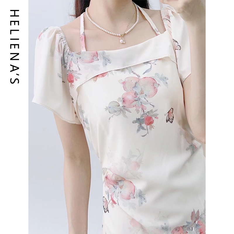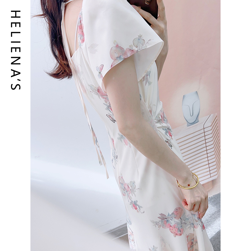 海兰丝2024夏新款国风收腰显瘦中长款鱼尾裙石榴花连衣裙性感裙子
