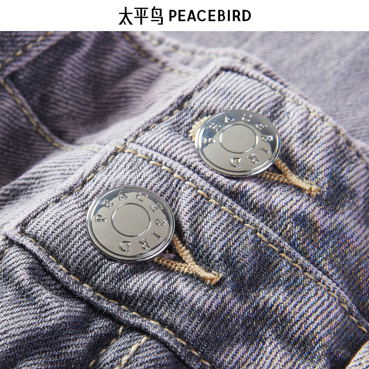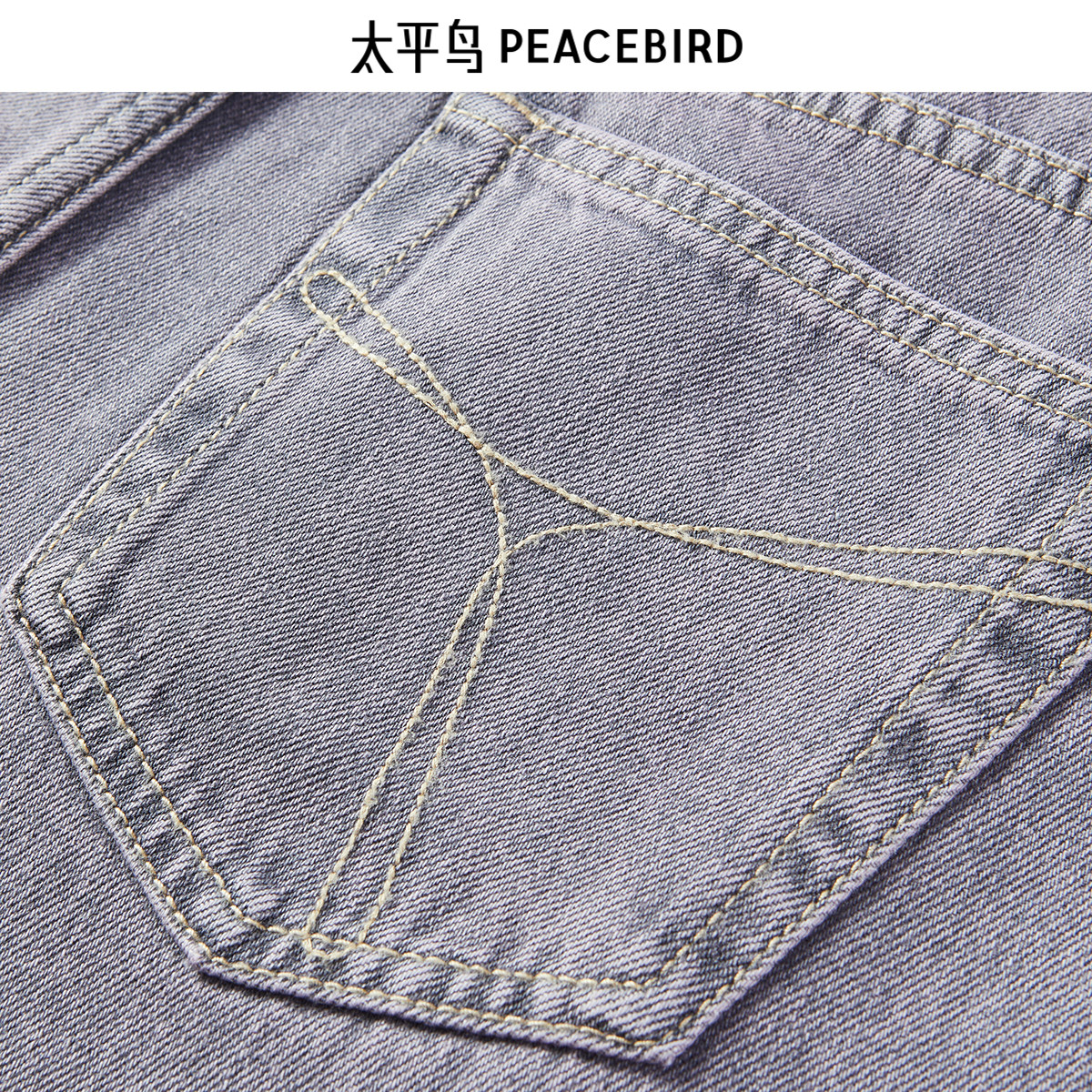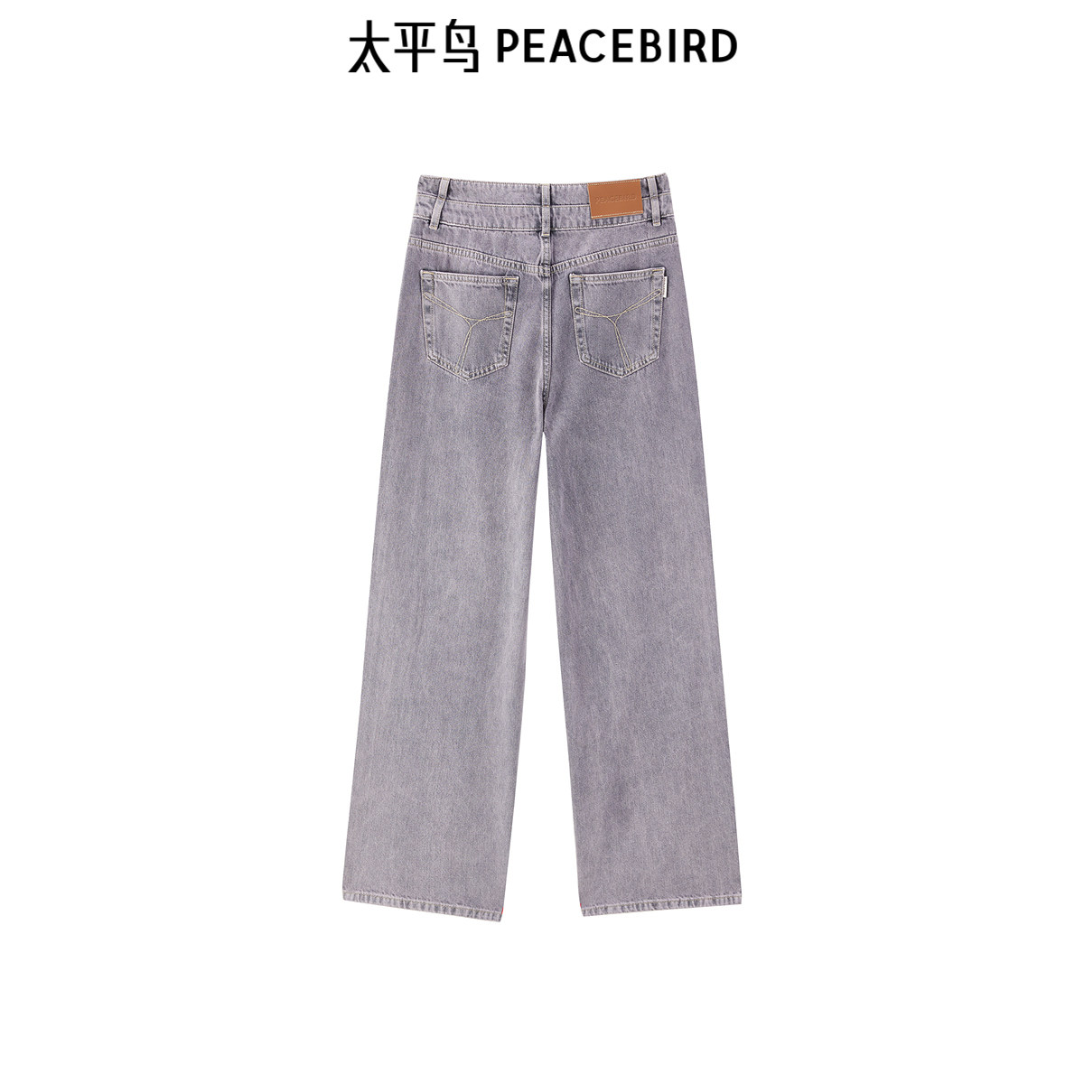 太平鸟女装秋季曲线分割腰部插袋皮标牛仔裤A3HAE3325