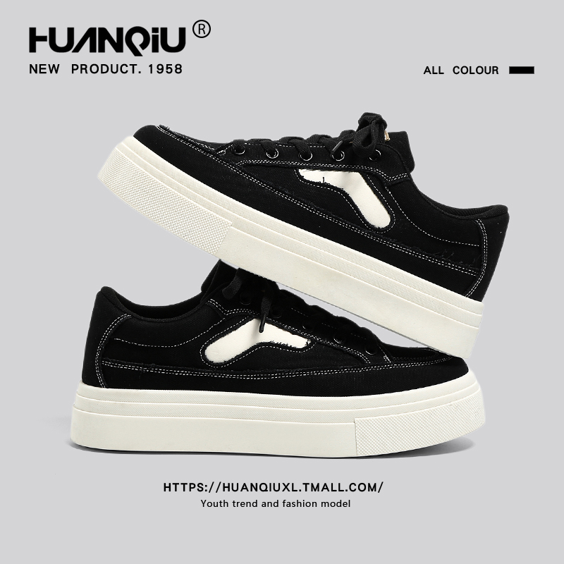 环球厚底休闲板鞋男秋季2025新款增高百搭黑色鞋子潮流运动鞋男鞋