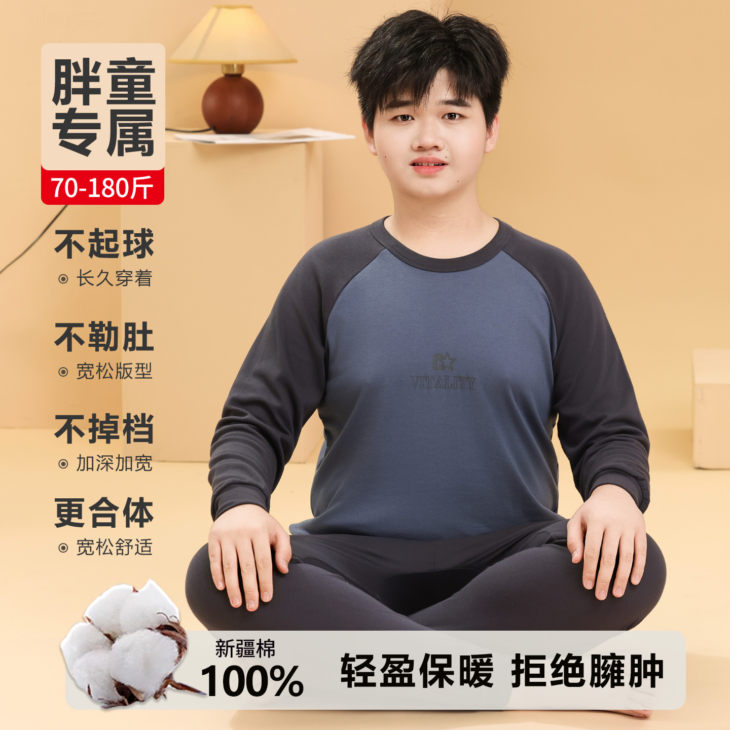 胖童秋衣秋裤内衣套装儿童打底纯棉加肥加大秋冬男大童睡衣家居服