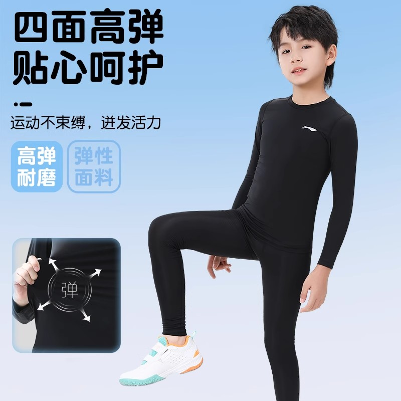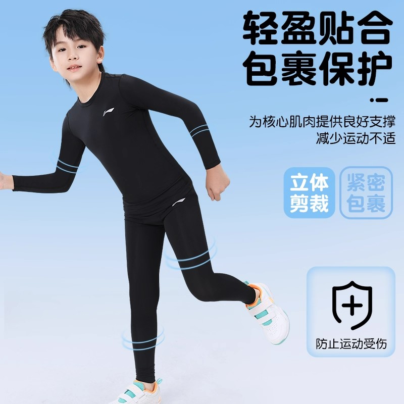 李宁儿童紧身衣训练服套装秋冬足球男童速干篮球跑步运动体能打底