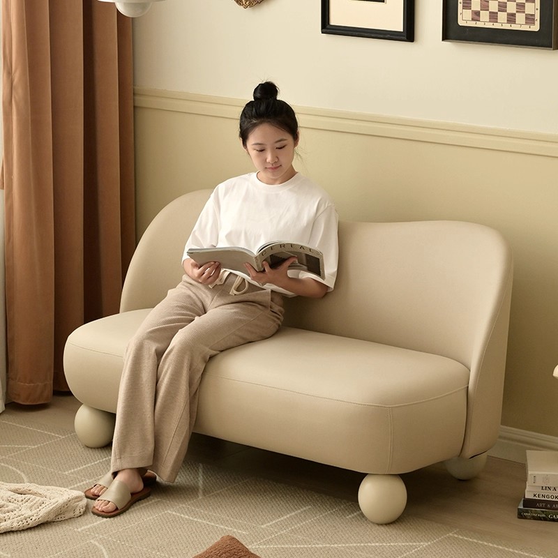 奶油风沙发客厅复古日式公寓小户型北欧极简服装店接待皮艺小沙发