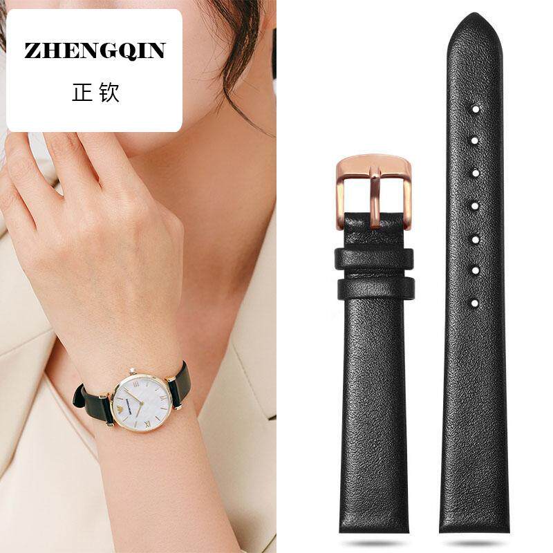 平纹光面真皮牛皮男女手表链针扣蝴蝶扣适配阿玛尼dw天王学生表带